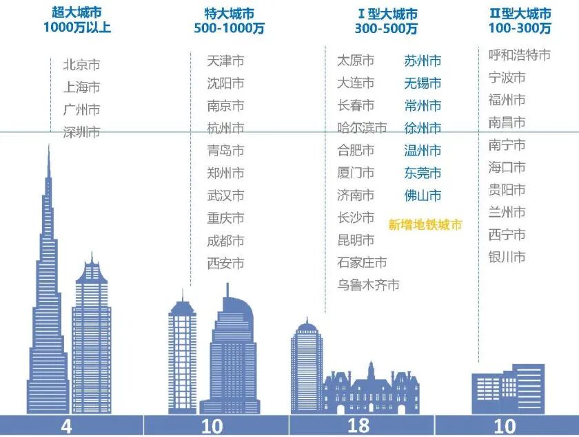 《报告》选取42个中国主要城市,包括4个超大城市,10个特大城市,18个I型大城市,10个II型大城市。新增7个轨道交通开通运营的城市,在同一标尺下对比分析更多城市案例。