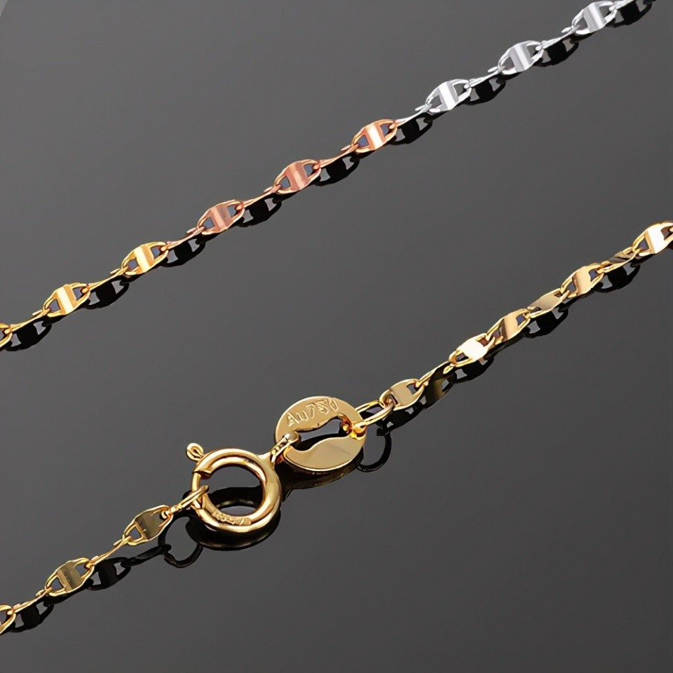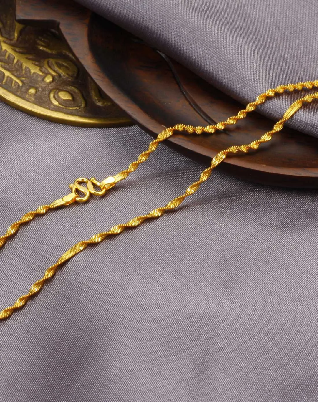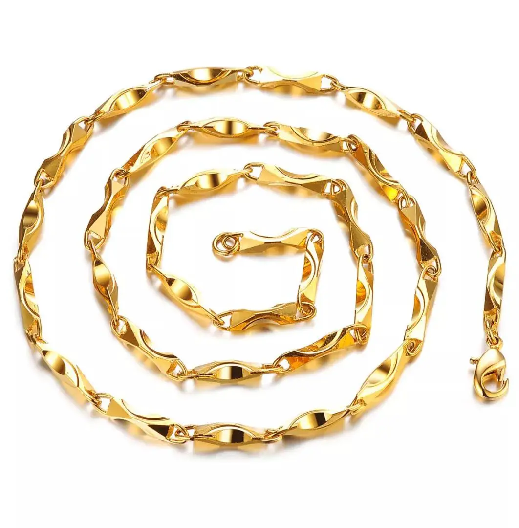 近几年非常非常火的项链类型,也是ins风的代表之一。它就像把粗的圆环用拧麻花的方式拧了一下之后,再一个挨一个组成链子,最后把凸起面给搓平。