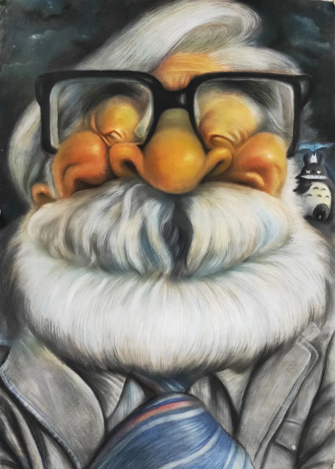 第三重境界“神”,也是肖像漫画追求的高级阶段。通过人物肖像的描绘,达到“像”的初级层次,继而追求“漫”的味道,这都是漫画作者必须具备的,但高级目标是达到传“神”的境界,即“传神”——能够刻画出人物的神韵和人物内在的精神气质、品格,甚至能将人物的精神世界、经历的苦难描写并反映出来,达到形与神的高度统一。就点与面的关系而言,“神”就是点,点睛之笔即为“神”,而非面,面面俱到八面玲珑乃为形。点,是取舍,有舍才有得,舍形得点,点即为神。