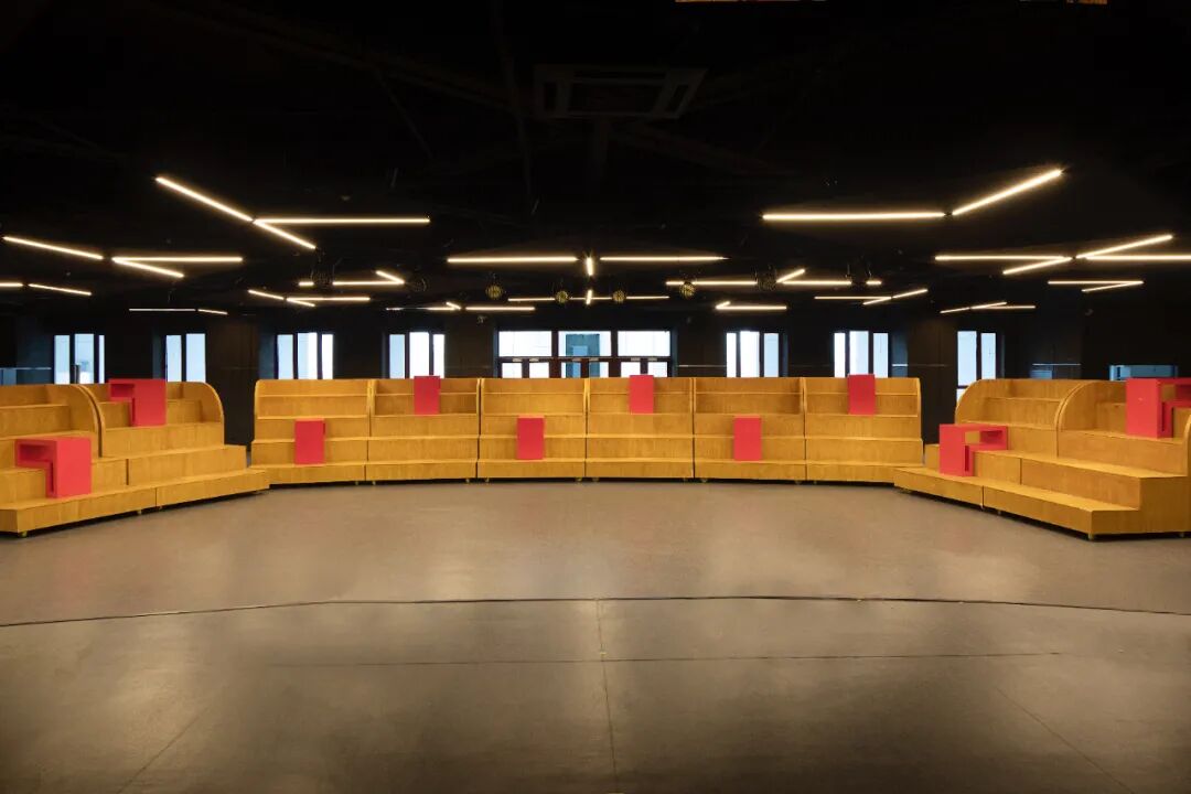 北京大学新太阳学生中心,位于学生生活学习功能区的中心地带,毗邻北京大学百周年纪念讲堂和第二教学楼,是一处集学生活动、服务、管理等功能于一身的建筑。随着信息时代的快速发展,功能单一化和设施老化问题让空间无法满足学生们的课余需求,以小剧场为起点,让新太阳学生中心成为校园创意“汇聚点”是本项目的重点。