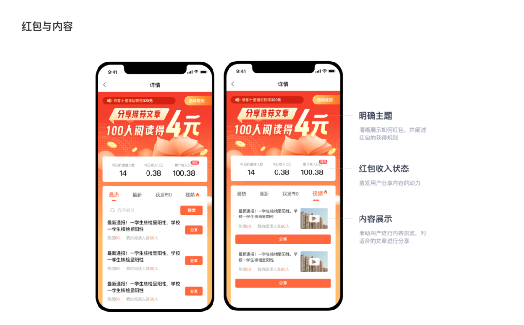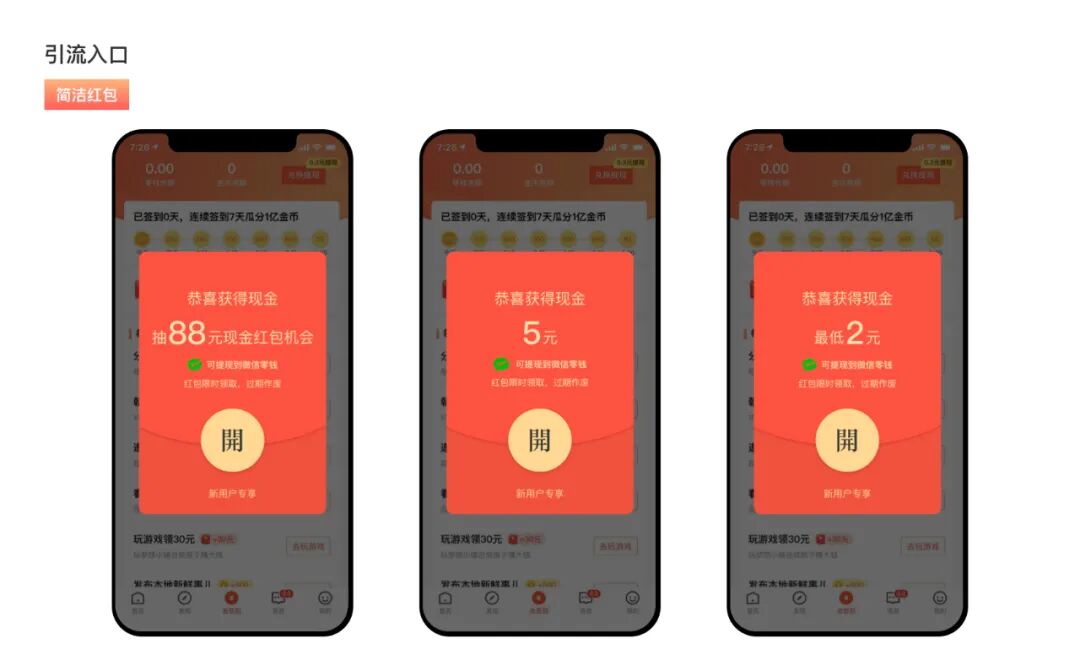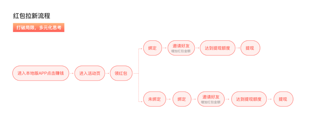 最新文章2023-09-18 项目总结|红包设计测试,驱动裂变数翻三倍 01 前言 58本地版处于一个用户迅速增长阶段,需要通过拉新、个推、信息流投放、渠道投放、马甲包、红包等方式多种方式实现获客和尝试用户增长路径。这次我们采用红包裂变拉新的方式。 02 为什么采用红包的形式 2014年,微信红包一经推出就引发了全民抢红包热潮,微信支付也通过微信红包场景成 功逆袭,实现了“马云花十年做的事情,微信一夜完成”的成效。 2021年春节,火爆的微信红包封面实现了用户与品牌的“连接”,微信搜一搜、视频号、朋友圈广告、公众号均获益颇多。 用户对红包这种场景比较熟悉,红包拉新对于用户有吸引力,很关键的一点就是用户觉得不需要巨大投入,就可以获得利益,觉得自己赚到。 03 验证本地版APP是否适合红包裂变的一种尝试 58本地版用户人群 通过58本地版用户人群可以看出,58本地符合下沉市场的特性 1. 对价格和收益比较敏感,愿意花时间获得金钱上的奖励 2. 会下载一些现金奖励新闻资讯app、视频app 3. 熟人社交影响大。 所以本地版符合裂变标签的用户存在拉新空间。 04 项目设计目标/探索解决方案 红包裂变的目的非常明确:拉新。为了达成拉新的目标,一开始我们根据基本的拉新思路进行了流程设计。 但在进行执行评审的时候,我们意识到,这样的方案虽然可行,但落地成用户流失也是特别大的,对于未绑定用户来说,在前期没有看到具体的活动页面,用户不知道具体的利益点,所以这个时期用户流失是特别大的。 我们不得不推倒开始的方案,开始思考:是否有更好的解决方案? 在综合设计思维,开发思维,运营思维去思考问题后,我们提出了一个崭新的实现方案:利益点前置 在这套新的流程实现方案支持下,我们按照对拉新影响最大的引流入口进行探索。我们对引流入口进行了三轮用户调研。 (1)异形红包:在利益相同的情况,调研用户对不同红包样式的铭感度。 (2)玩法红包:增强“领红包”的互动性、趣味性,在“领”的过程中体验幸福和快累。 (3)简洁红包:简介的红包样式,最大突出利益点,让用户最大的感知到价值,对不同的金额的感知进行测试。 从测试数据看,利益突出更能吸引用户。在这套新的流程实现方案支持下,我们按照对拉新影响最大的引流入口进行探索。我们对引流入口进行了三轮用户调研。 04 做有趣的设计 作为设计师,产品本身的需求需要满足,用户的喜好和属性也需要考虑在内。 无形中这就存在着一个“结构”,我们要做的是发挥我们的创意,通过不同的“搭建方式”提供更多可能性的方向;通过不同的表现手法和视觉语言带来更打动人心的设计。 在红包的设计过程中,也打破了传统红包采用红色设计方案,而是运用撞色突出页面中红包的视觉。 让红包与页面内容形成联系、丰富内容与红包的关联度,增强红包对于产品的价值 历史数据:上线一个月,裂变效率提升了三倍,较之前活动而言,活动有效裂变率大幅度提升,增粉成本有效降低。 05 总结 综合整体数据来看,58本地版还是适合去做裂变活动的,可以将红包作为核心或主要拉新渠道,在有预算情况下,适宜源远流长地去长期投放。 红包拉新也存在一些问题:红包拉来的新用户未必为产品需求用户,对留存有一定影响。当然,留存与产品本身也有一定关系,留存数据还是需要长期观察,并对新用户进行一定习惯培养。 🙋 一起聊设计 🙋♂️ 高质量,学知识的设计行业群 设计行业一手资料 设计大厂最直接内推 定期大咖直播 0门槛扫码进群! 期待与更多优秀设计师一起成长🤩 本文来自微信公众号“58UXD”(ID:i58UXD)。大作社经授权转载,该文观点仅代表作者本人,大作社平台仅提供信息存储空间服务。 TAGS: 拉新用户红包设计 相关文章英赫日报 | 李宁 × 空…米兰时装周的异星来客,用结…米兰“MoLo”移动与物流…西班牙艺术家 Juan d…把小鸟画成美少女,她弃医从…这些鸡蛋包装不只是有趣,设…国产文具又炸了!晨光再造“…七点资讯 |《更衣人偶坠入…AlphaDraw筑绘通「…秦始皇的黑,是你不懂的黑。