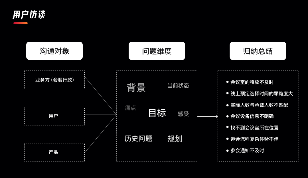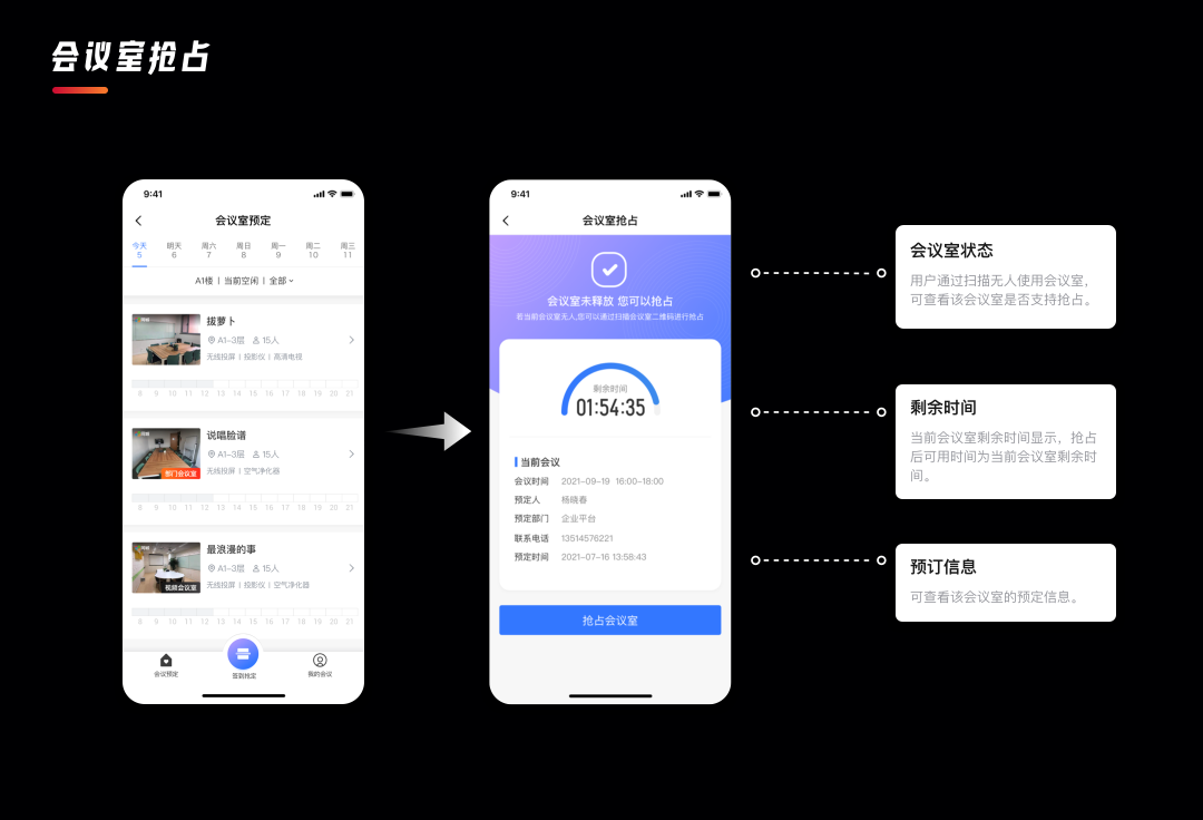 会议是企业员工制订工作计划、同步工作进展、进行信息协同的主要途径。员工需要快捷的组织会议,企业需要对会议室进行高效的管理。目前公司内部围绕会议室也存在着许多问题:会议室资源浪费:线上预定不到、线下会议室无人使用等等。为了提高员工的会议体验以及行政人员管理效率。设计侧联合产品及业务在Q3对整个会议系统进行体验优化。本文将分享记录本次会议室项目中的的一些设计思考和过程。