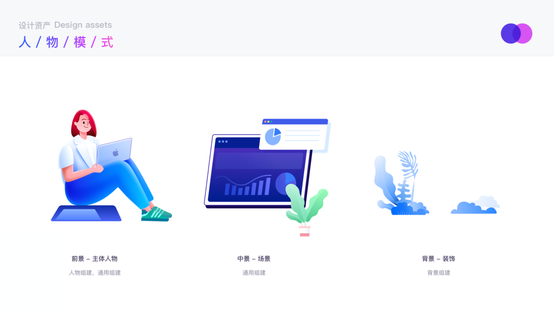 物体模型:由于人物会给画面更多重量感,适用于空间较大的页面中。所以增加了场景模式以确保画面的丰富性与轻量化。