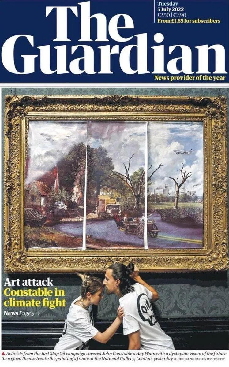 Just Stop Oil首页弹窗的卫报封面,显然在信息时代,三个月前太过久远。