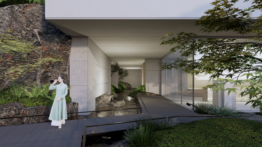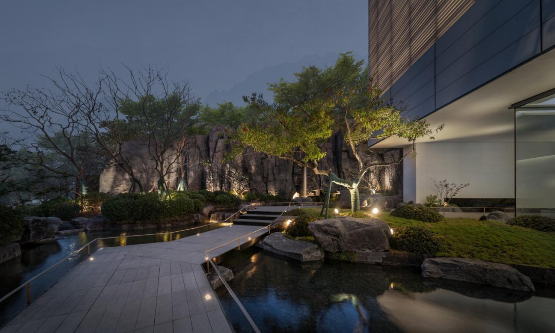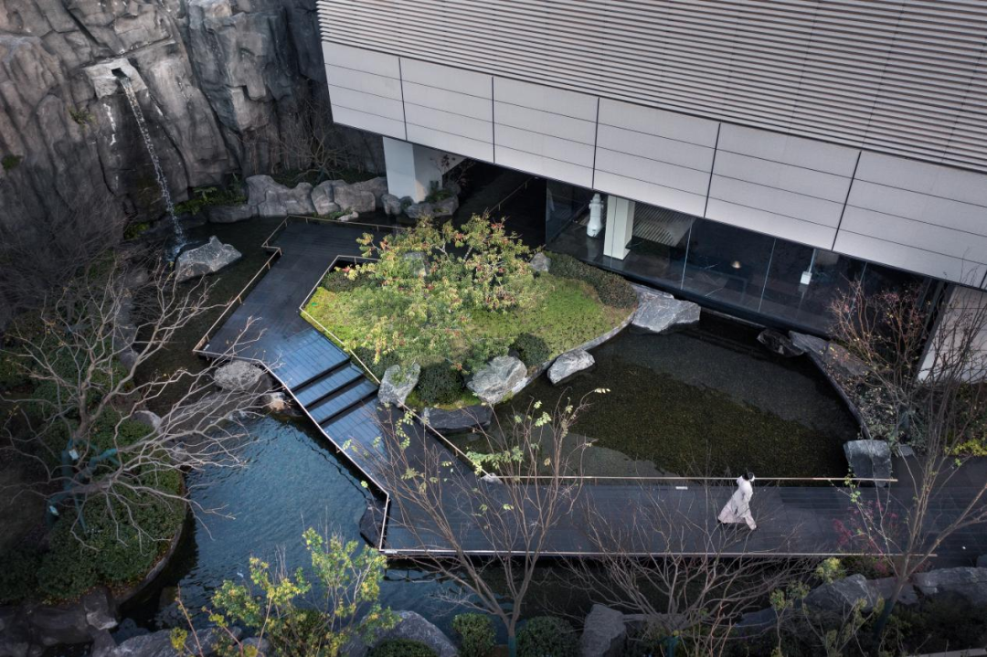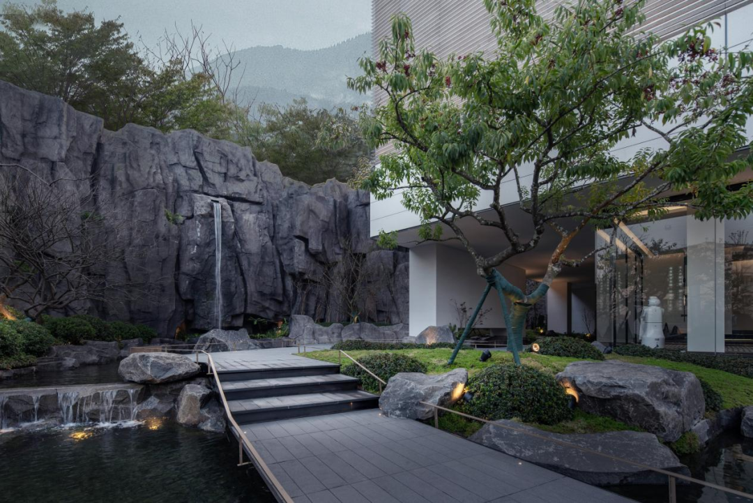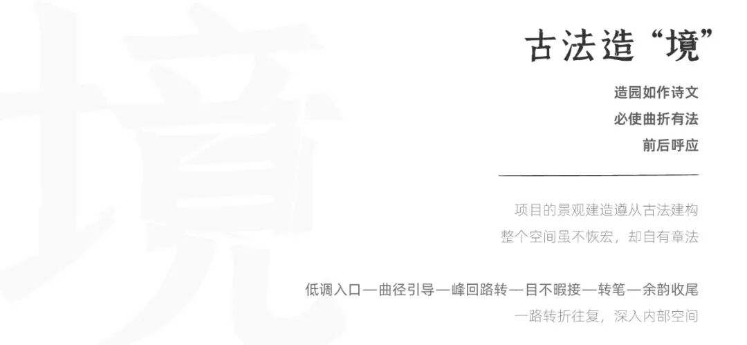 项目设计以“山水”切入,在新山水的空间里传达我们现代理想生活之志。设计梳理山水画《溪山行旅》动线,以古法造物,谋得人与山水视觉上的榫卯关系,利用多重视野,结合现代的设计手法掇山理水,层层演化,在城市里还原一个古画中的山水世界,重塑东方美学人居。