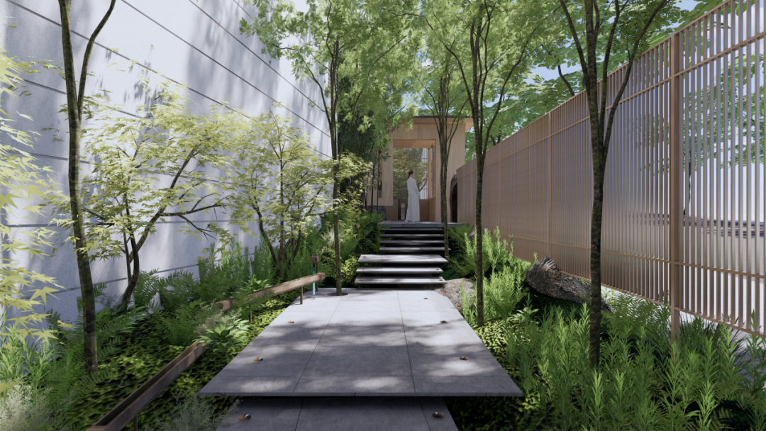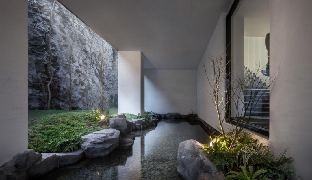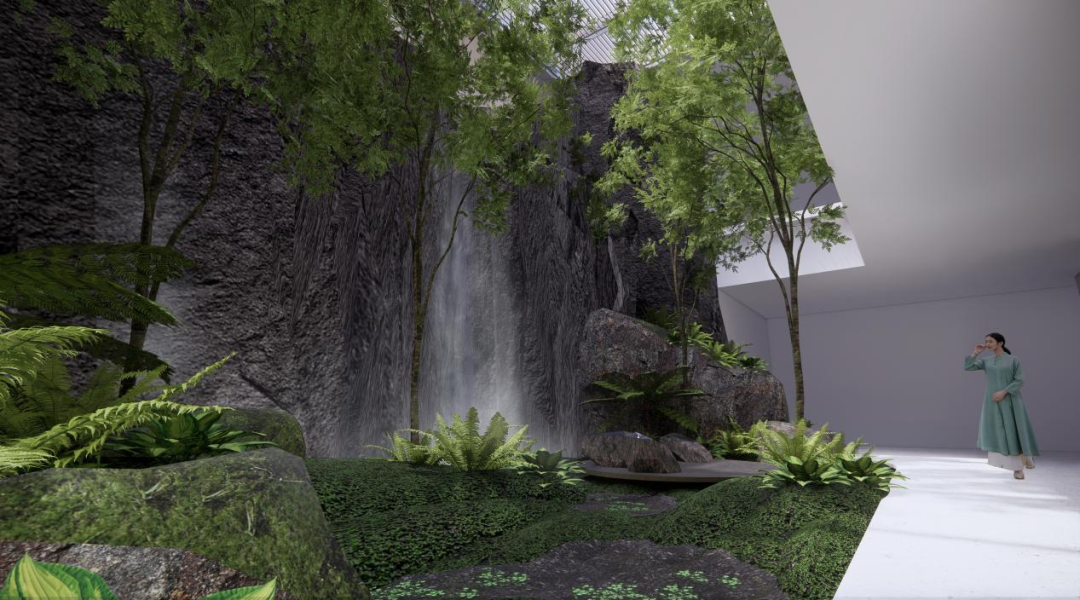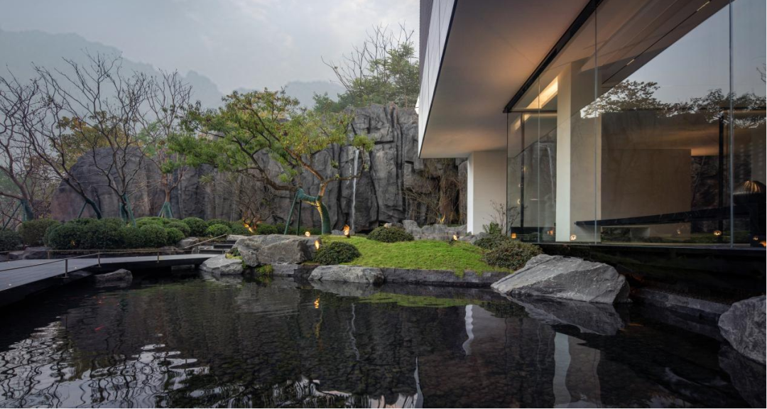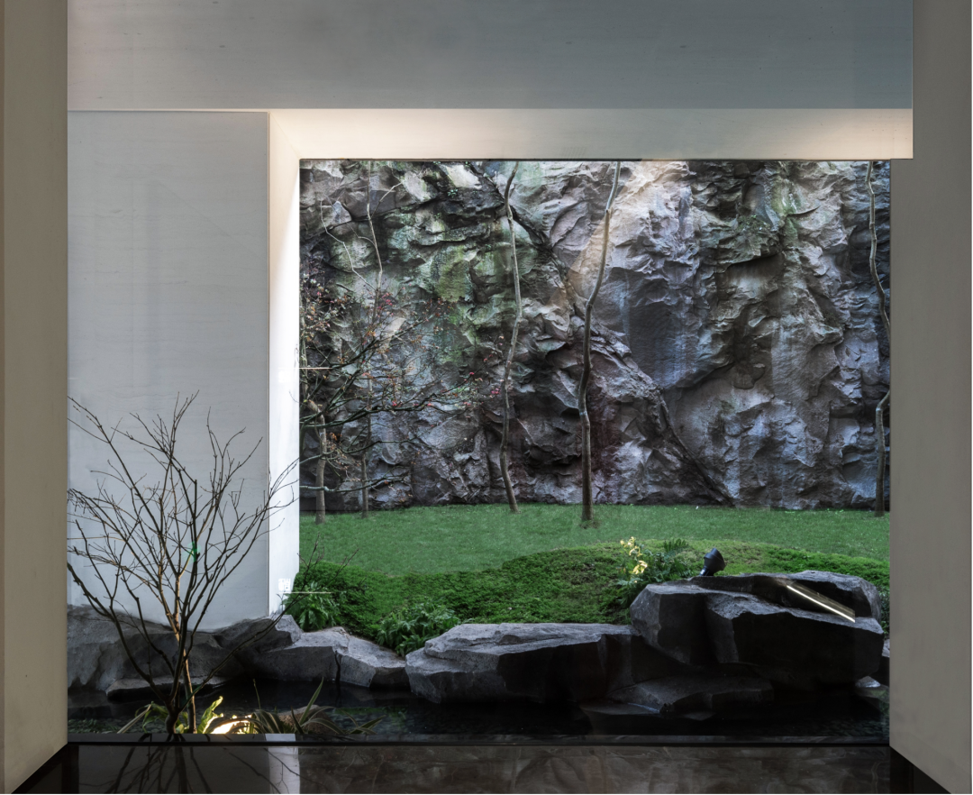 项目设计以“山水”切入,在新山水的空间里传达我们现代理想生活之志。设计梳理山水画《溪山行旅》动线,以古法造物,谋得人与山水视觉上的榫卯关系,利用多重视野,结合现代的设计手法掇山理水,层层演化,在城市里还原一个古画中的山水世界,重塑东方美学人居。