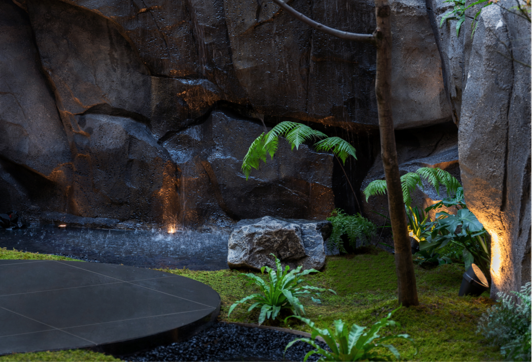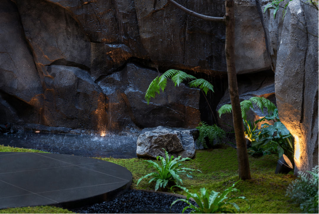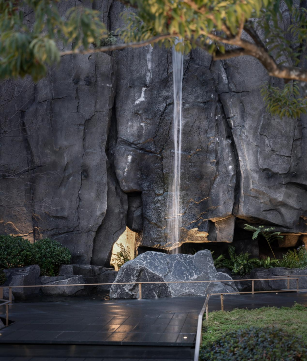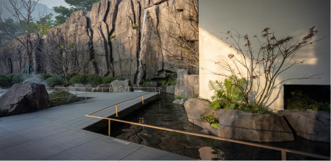 崖壁景观,结合塑石工艺,重现自然山水意境