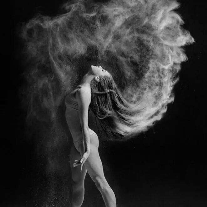 /像是加了特效一样,女舞者在粉尘里舞蹈,视觉冲击力太强了
