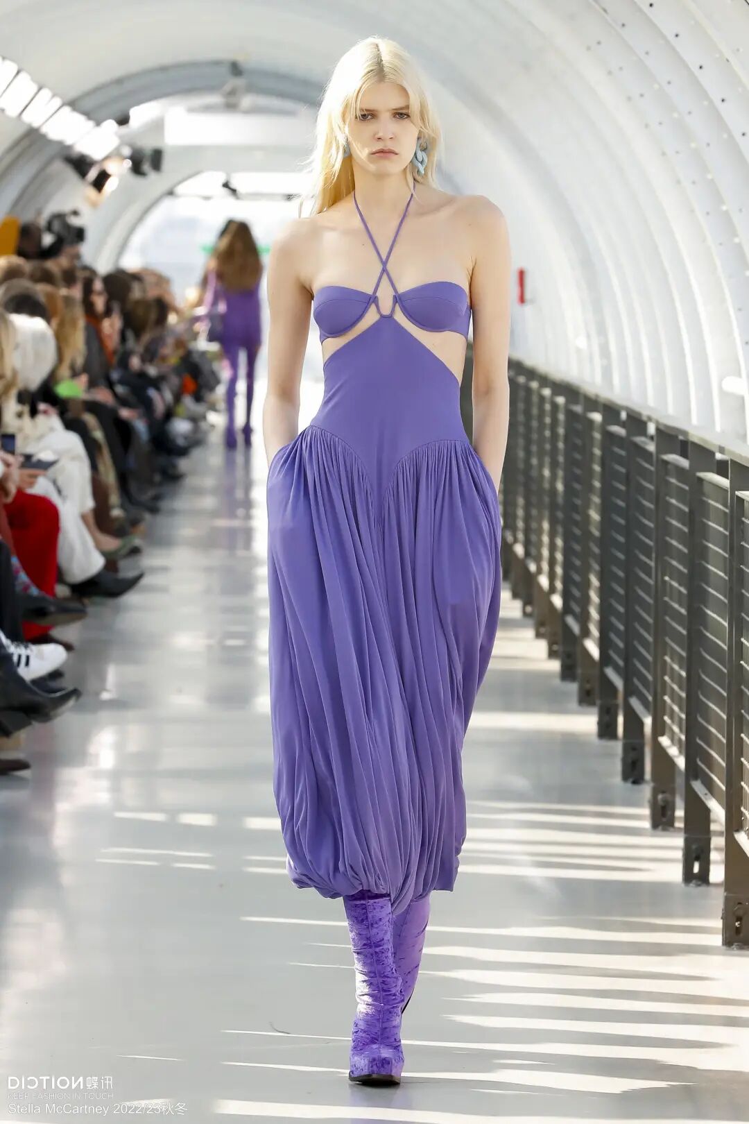 在过去的几个赛季中,Stella 一直在推动紫色,紫罗兰色高贵,庄重,且富有神秘感,秀场整体来看,紫色容纳着许多淡化的层次,显得那样柔美、动人。