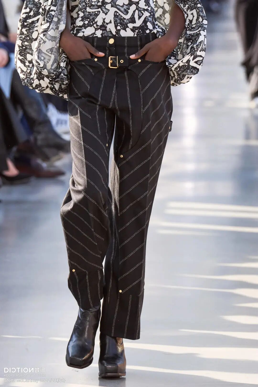 合身连体裤、工装裤都带有一部分的解构元素的应用。其中腿部裁片元素的设计作为一种解构结构的设计手法提供了很好的例子,在维持整体品牌调性的情况下,不失充满新意的设计感。