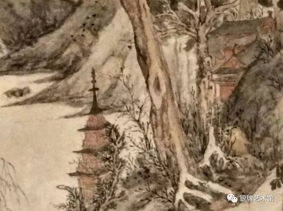 树木的勾撇点染,笔力清新,墨色滋润,这与他平时常用的尖峭峻利的笔法稍异。