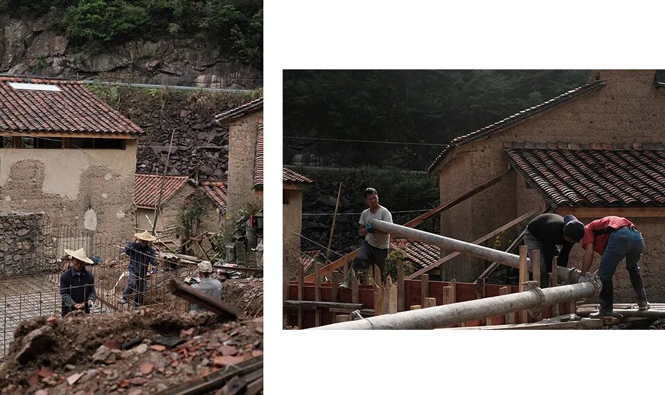 有了好的业主,好的设计,还需要有好的施工队将其呈现,在此我们必须隆重提及踏雪的施工团队 — 晖哥及其小伙伴们。晖哥,台州临海草宿的民宿主,在自己I期、II期及III期的古村老屋改造中积累了丰富的经验,结合自身多年民宿运营经验,以及对审美、工艺的不懈追求,第一次带着自己的施工团队走出草宿,在踏雪九里毫无保留地分享。每一处细节,每一道工艺,在尽可能追求完美的方向上不断打磨,最终呈现出令业主方、设计方和自己都颇为满意的作品,相互成就。(关于晖哥和草宿)