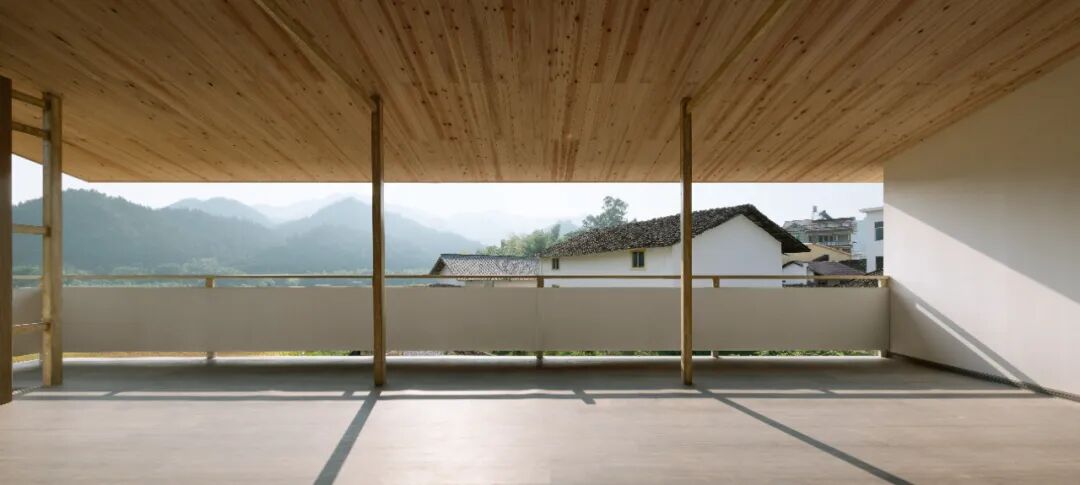同时,建筑的横向长窗,以及刻意拉伸压低的屋檐,让建筑的对外视线始终保持一种宽幅扁平状,这使得村落的风景犹如中国山水画横轴一般,充满了叙事与流动性。