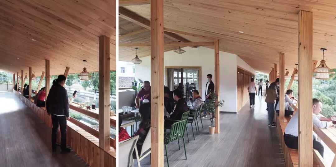由建筑形态的存在来引导人的行为,让村民或游客都能自发的产生悬挂而坐并与道路互动的场景,体现了瑶理田园驿站作为乡村活化再造的实践具有很强的成效性。