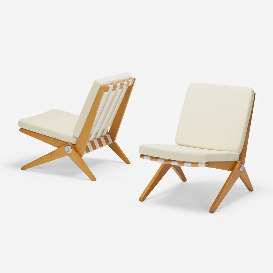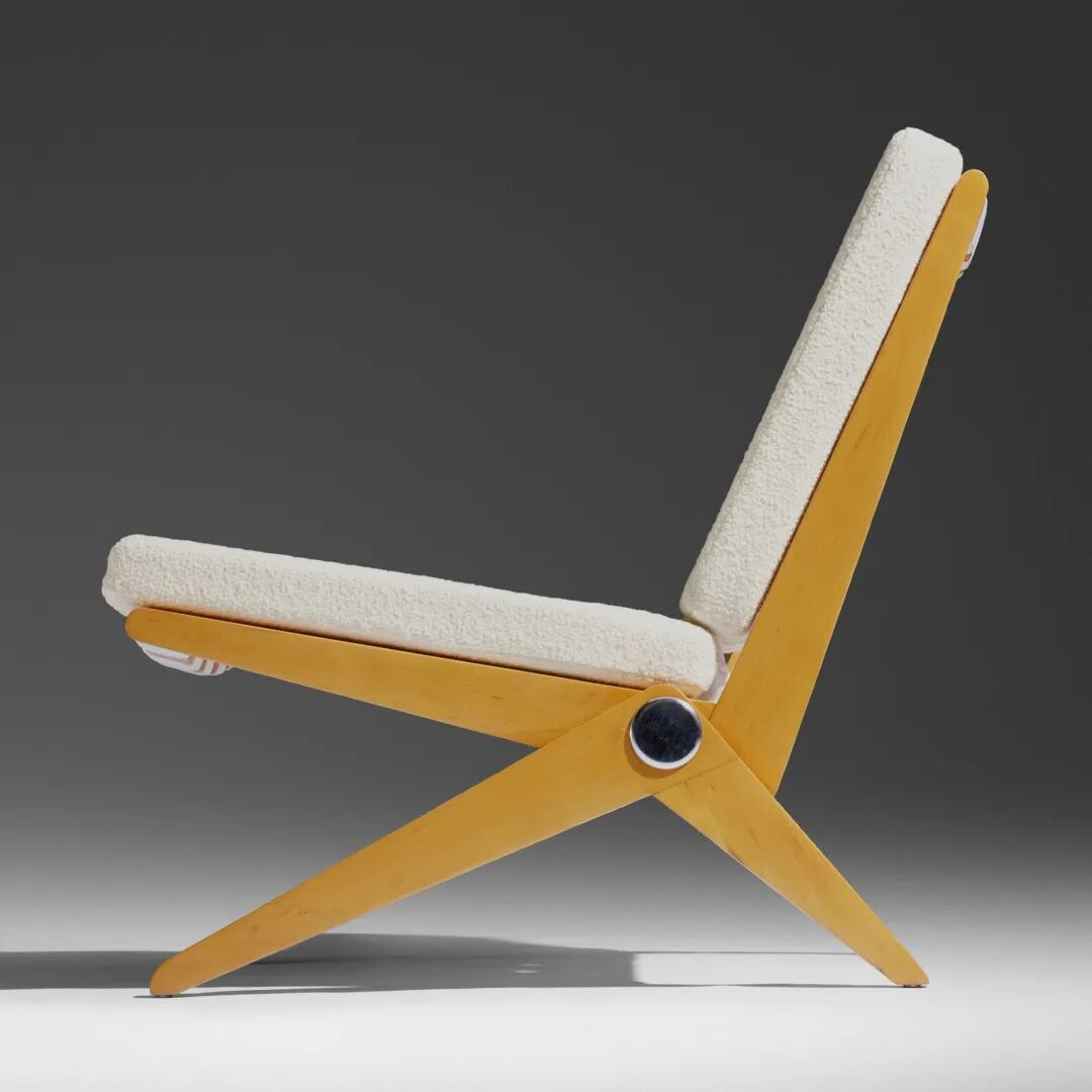 由 Pierre Jeanneret 设计,1948 年,由 Knoll International 制造。用于靠背和座椅的简单皮革靠在木框架上。