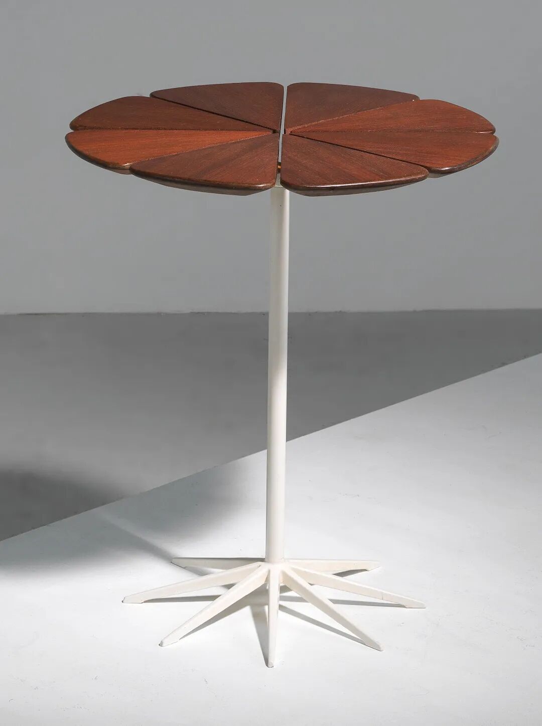 桌子上的顶部由八片花瓣制成,这些花瓣安装在制作精美的铸铝蜘蛛上。不需要环形支撑,每个花瓣都是独立的,它允许桌子随着天气而膨胀和收缩。