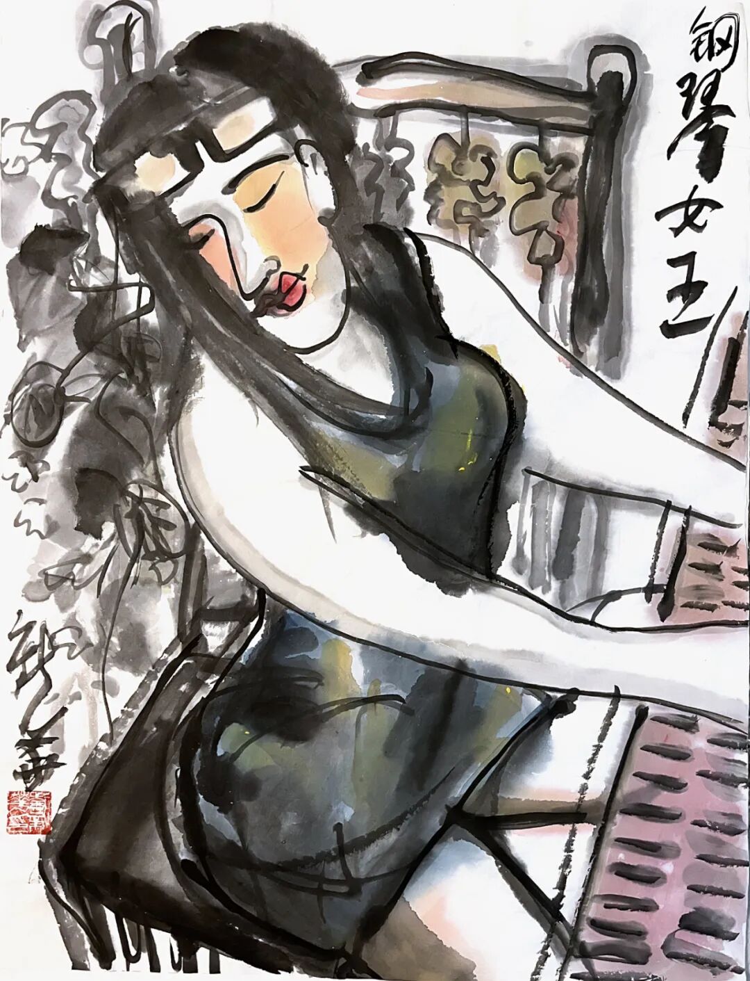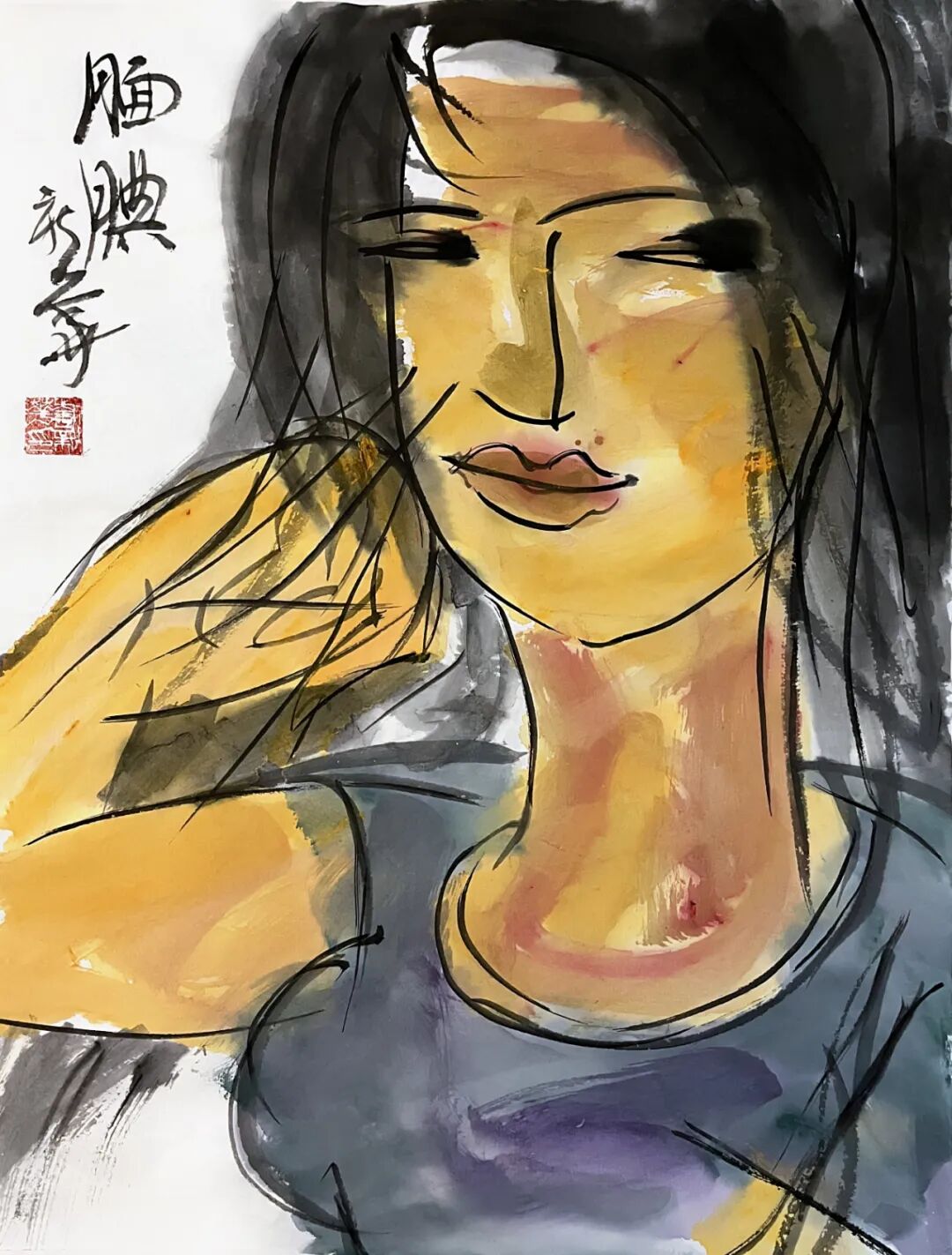 随心性而无从固守视觉,不固化。随心随性自由奔放。从先祖根磐中找到拓展新文化的契机。我主张画家造笔,书写出如刀锋般犀利的线条,以适应于现代人的心性,这就是我说的异笔之线。异笔之线画异形之象,以补填中国画造象苍白、思维简单化的通病。