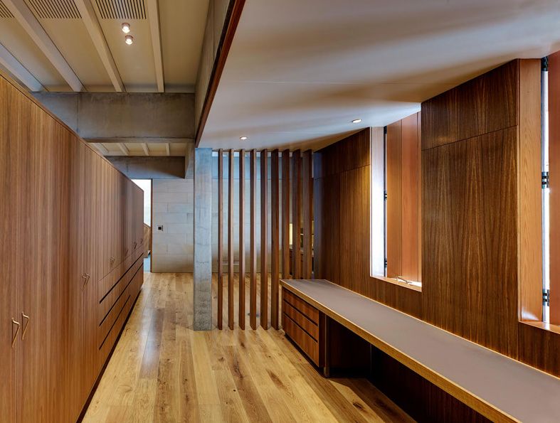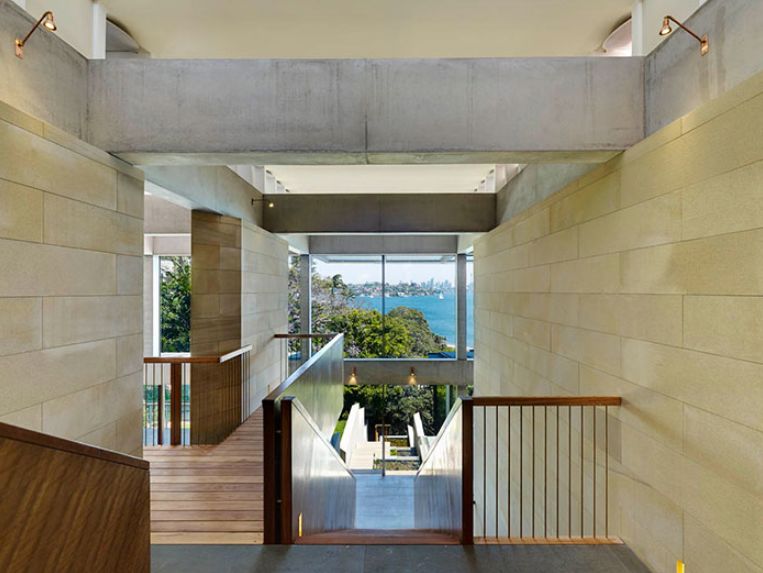 它位于一个朝北的山坡之上,有着非常大胆的建筑设计。Peter Stutchbury 将房子的建筑与整个山体几乎融为一体,避免对原有的地貌产生过多的伤害。