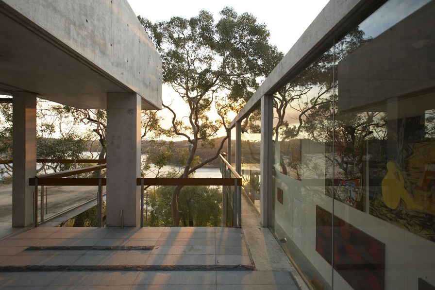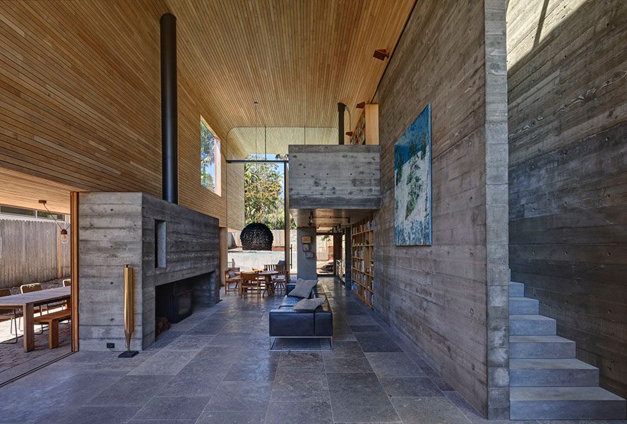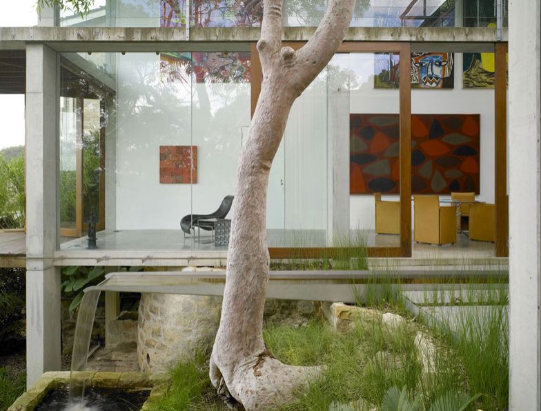 同样位于山坡上,Peter Stutchbury 通过空间考量决定了建筑体积,让它成为了山体的一部分。