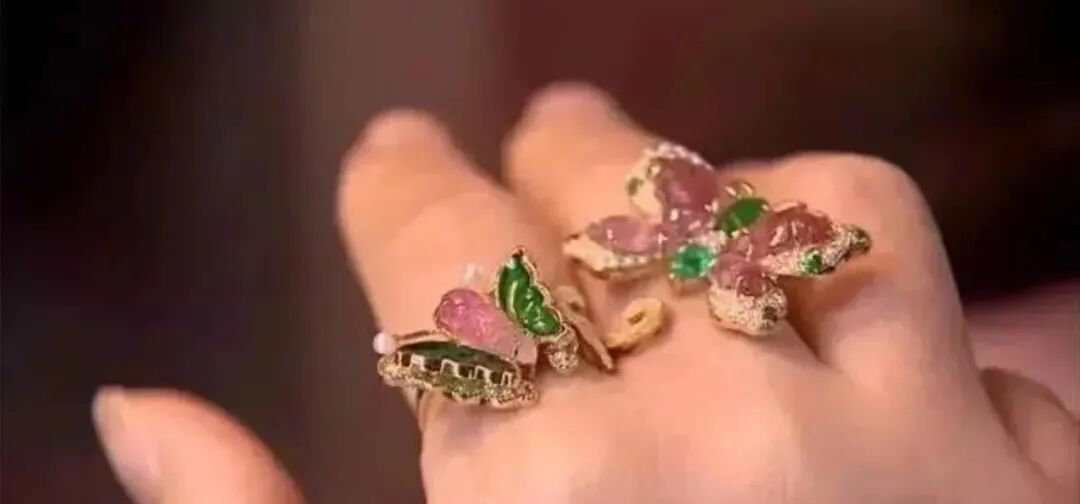 这对双蝴蝶戒指,被志玲姐姐一眼相中,一双蝴蝶翩飞于指间,灵动有趣。