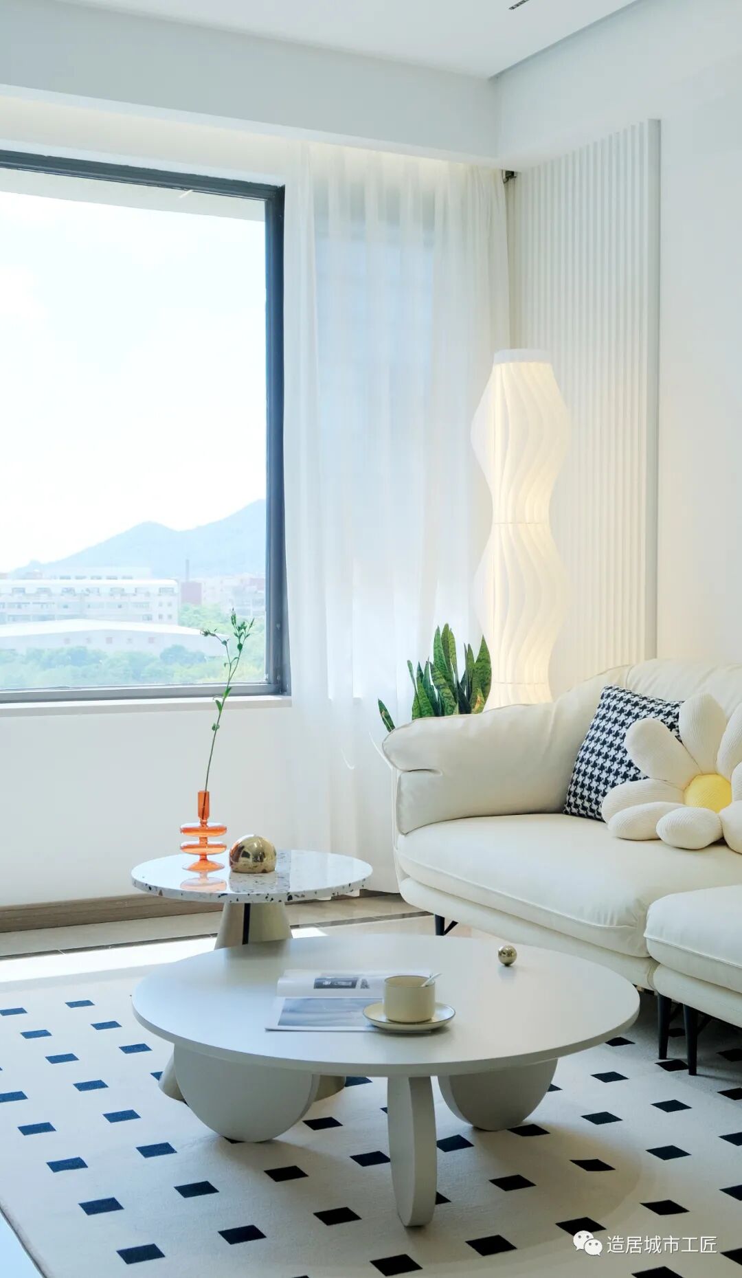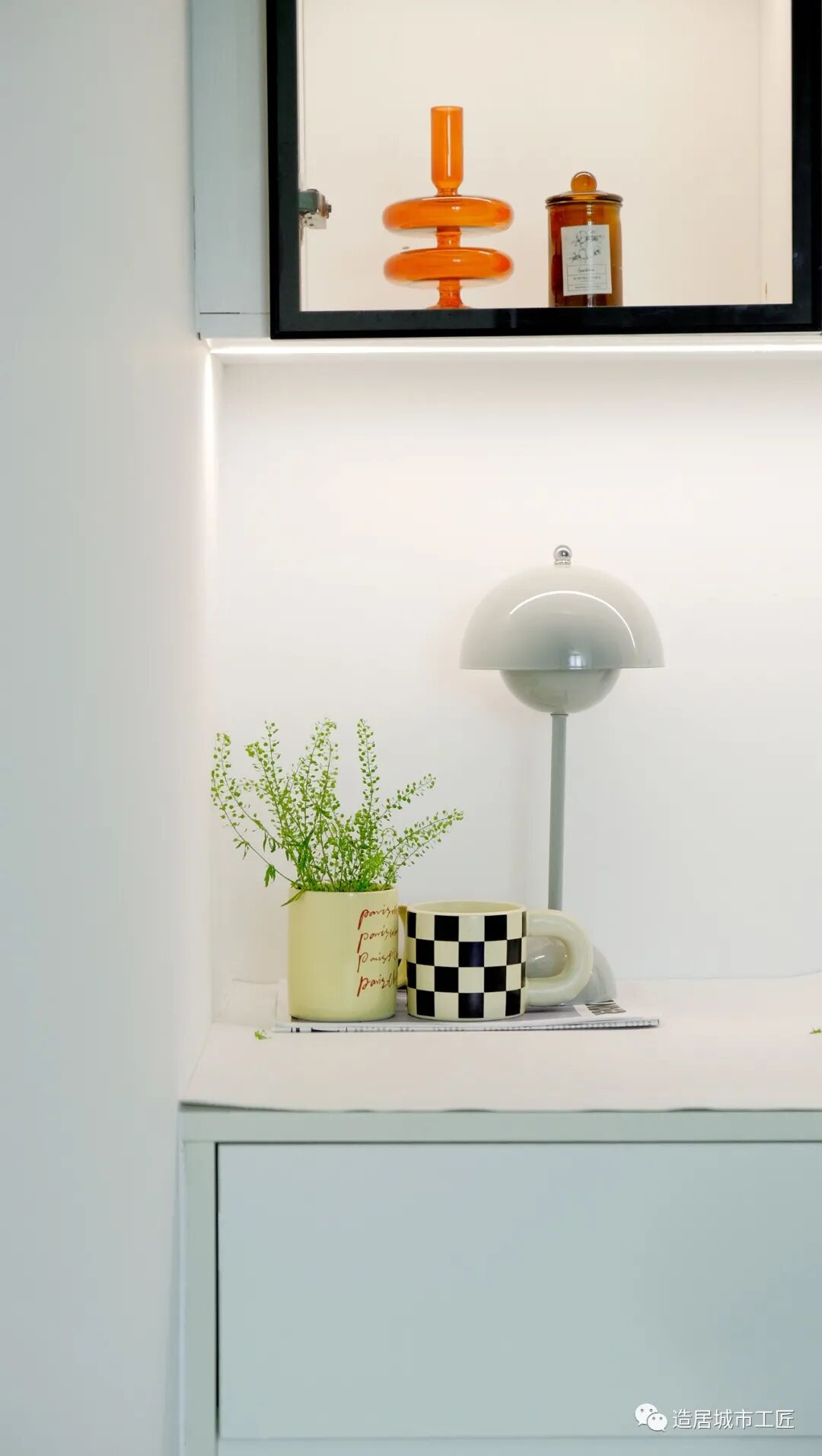 这不,在某个现代简约风的案例设计中,造居君就选择了干净、清冷的奶灰色花苞灯来进行搭配,不仅能和白灰为主的空间完美契合,而且哪里都能放,哪里都能搭。