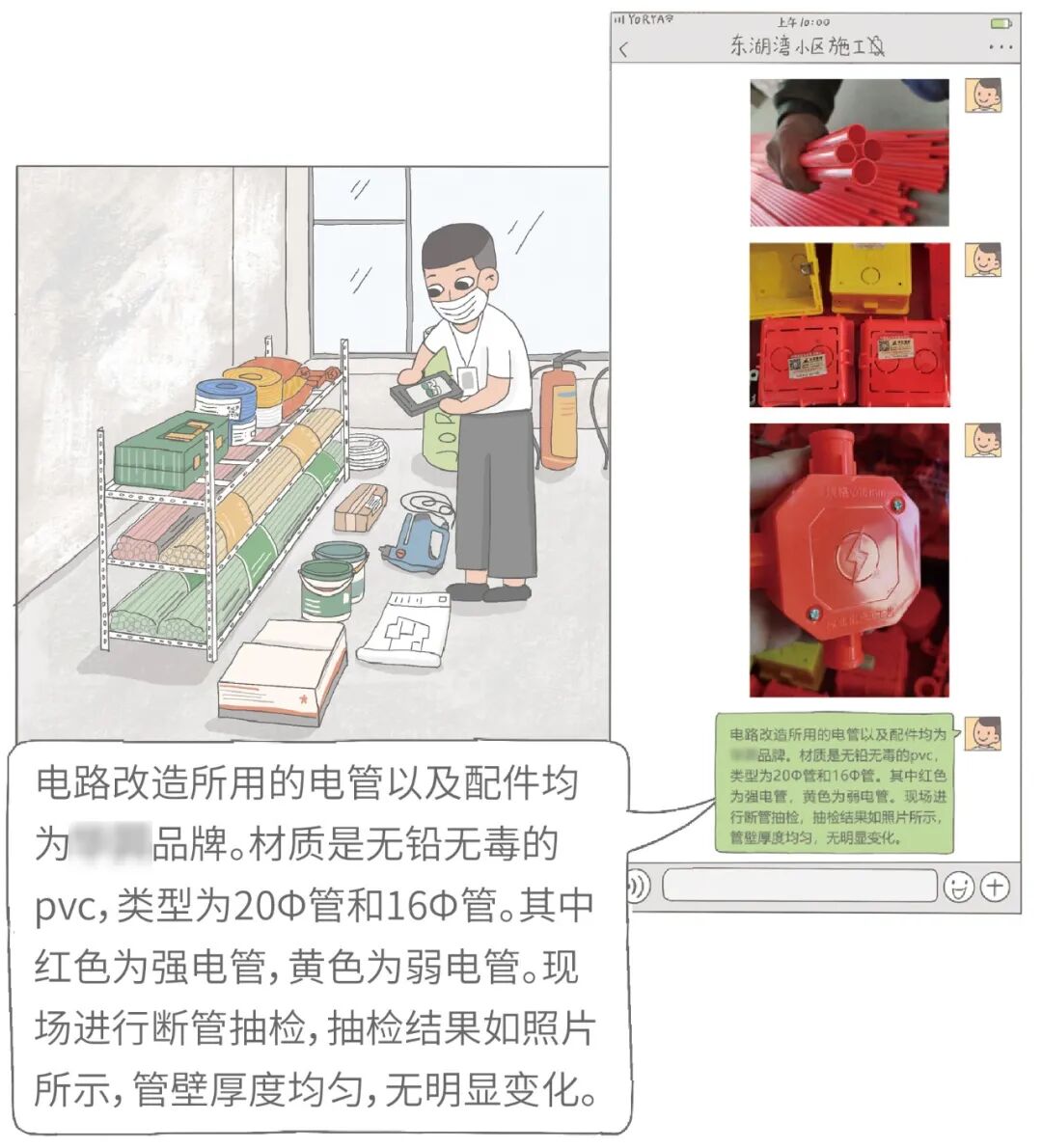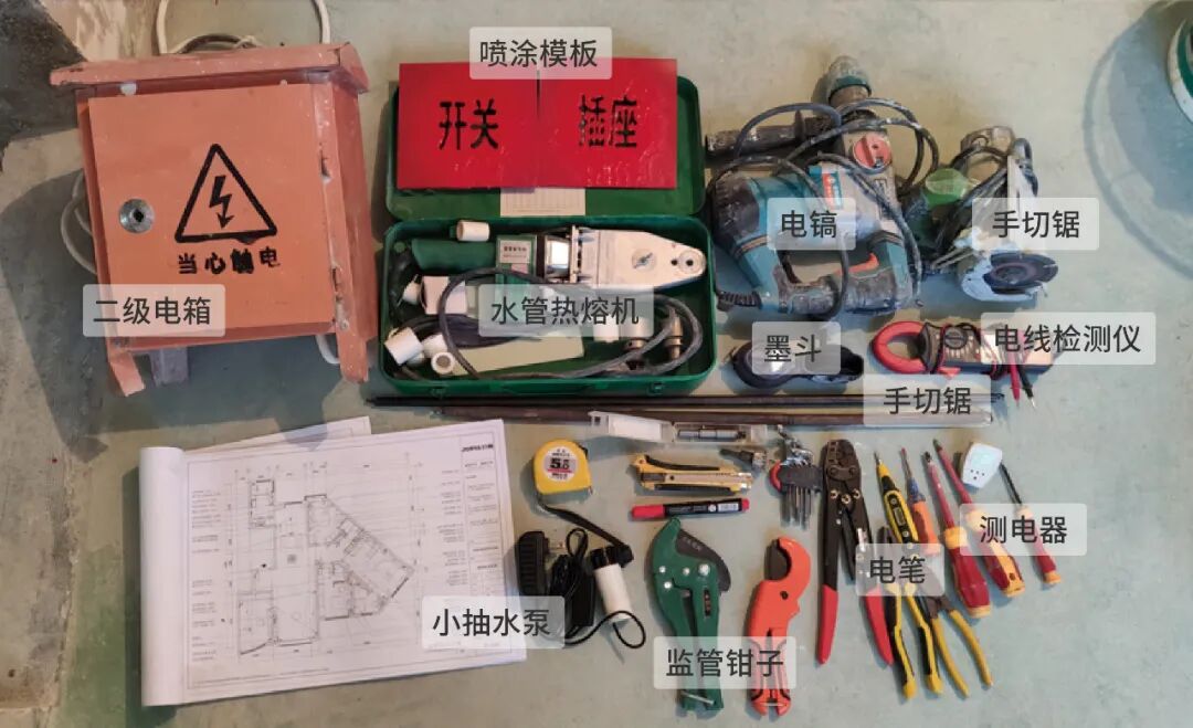 带着这位业主的疑问,我决定去东湖湾小区记录水电改造的全过程,以及需要特别注意的地方。这家的水电改造将由史师傅和张师傅共同完成,施工时间大概为20天,本节先从水电改造的材料说起。