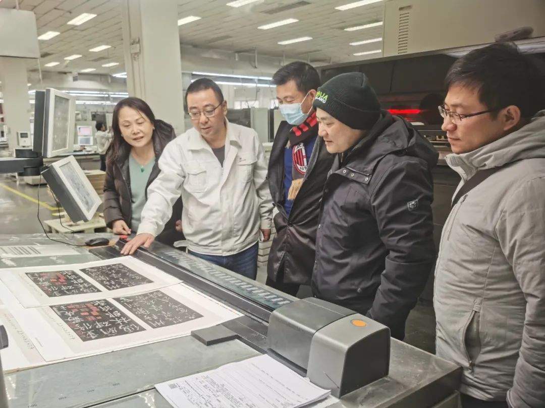 上海书画出版社技术编辑和责任编辑在印厂现场监督印刷
