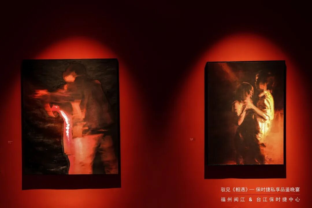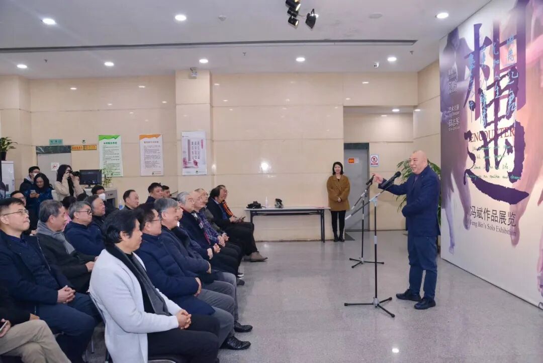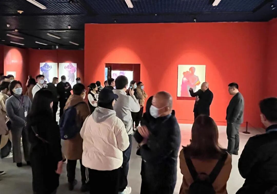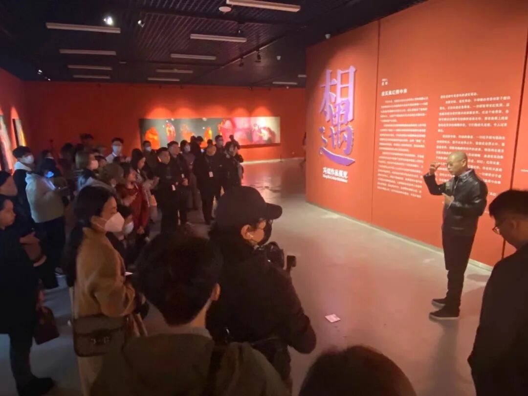 ◎11日下午,个展艺术家冯斌在福建省美术馆展厅给保时捷VIP专场导览上与现众交流