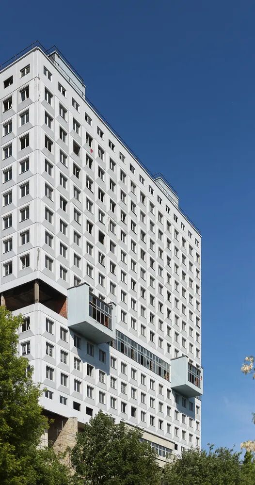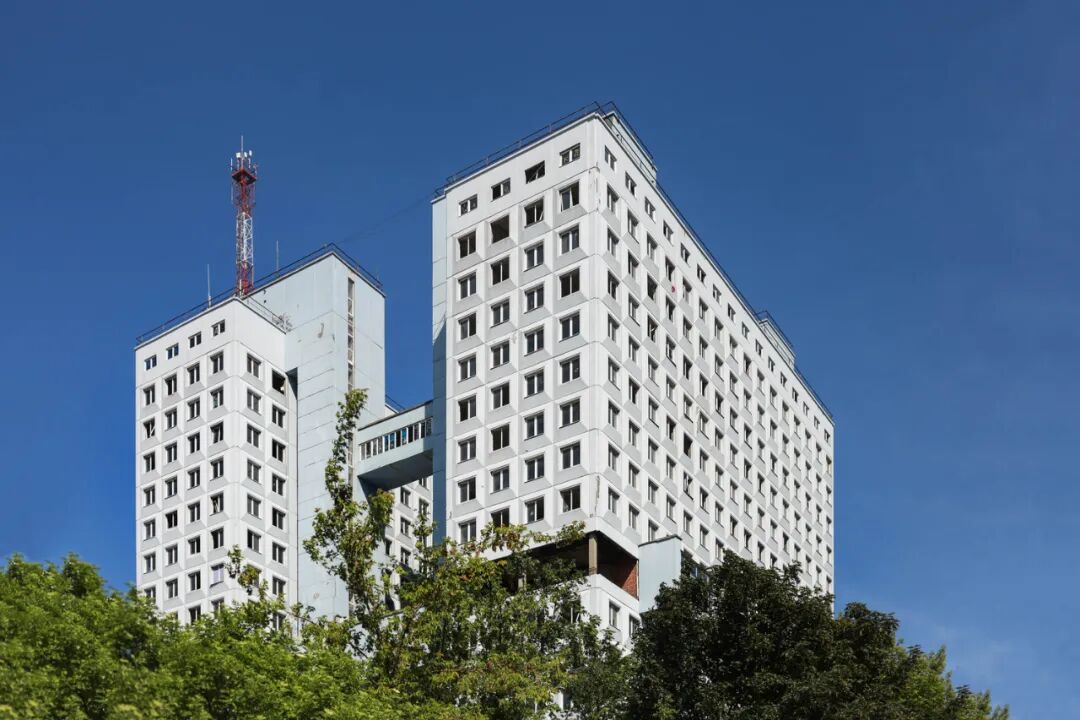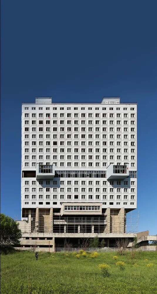✸ 后现代主义建筑更新、加强和扩展了象征性在建筑设计中的植入和解读,图表、表意文字、代码和类比方式都可以被应用于建筑设计之中。另外,这些符号的植入让建筑的叙事性得以加强,这些叙事出现在文化商品化时代,极大地强化了建筑的传播属性。苏联部分建筑的特殊性虽然和后现代主义并非同一时期,但不可否认,可被解读为现代到后现代过程中的灿烂一支。苏维埃之家是由建筑师 Yulian L. Shvartsbreim 设计的野兽派建筑。该建筑位于加里宁格勒市中心,自建设中期以来一直被废弃。然而,居民认为它是他们城市中最重要的城市地标。他们通常将这个结构称为“机器人的脸”,因为它奇怪的形状让人联想到机器人埋在脖子上,只露出它的脸。加里宁格勒是位于东欧的俄罗斯城市,与立陶宛和波兰接壤。直到 1945 年,这座城市都是德国领土;然后,在第二次世界大战后,成为苏联的一部分,将其名称从柯尼斯堡改为加里宁格勒。它的建筑是不同历史和文化时期的异国情调的混合体,从普鲁士遗产到德国建筑和苏联现代主义。苏维埃之家是一座标志性建筑,因为它建在二战后被彻底摧毁的柯尼斯堡城堡上。这座城市被苏联占领后,当局决定将这座城堡全部拆除,因为在他们看来,它是法西斯主义的象征。