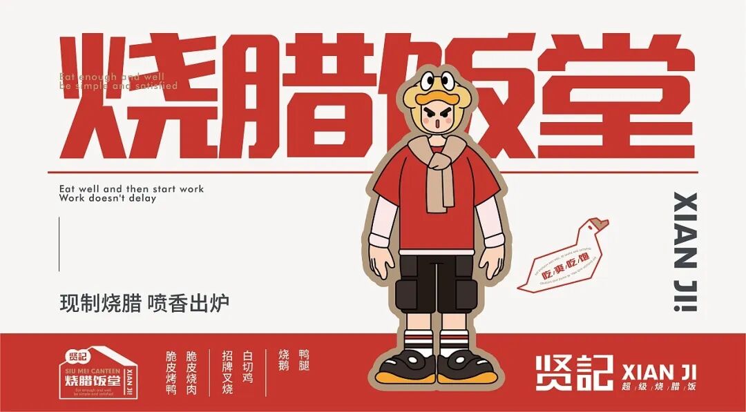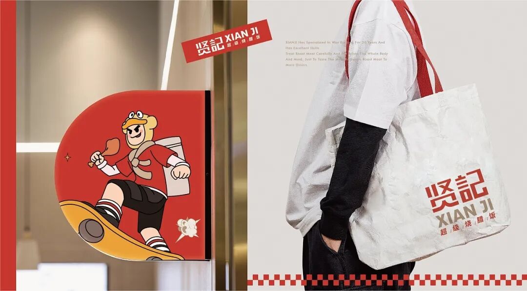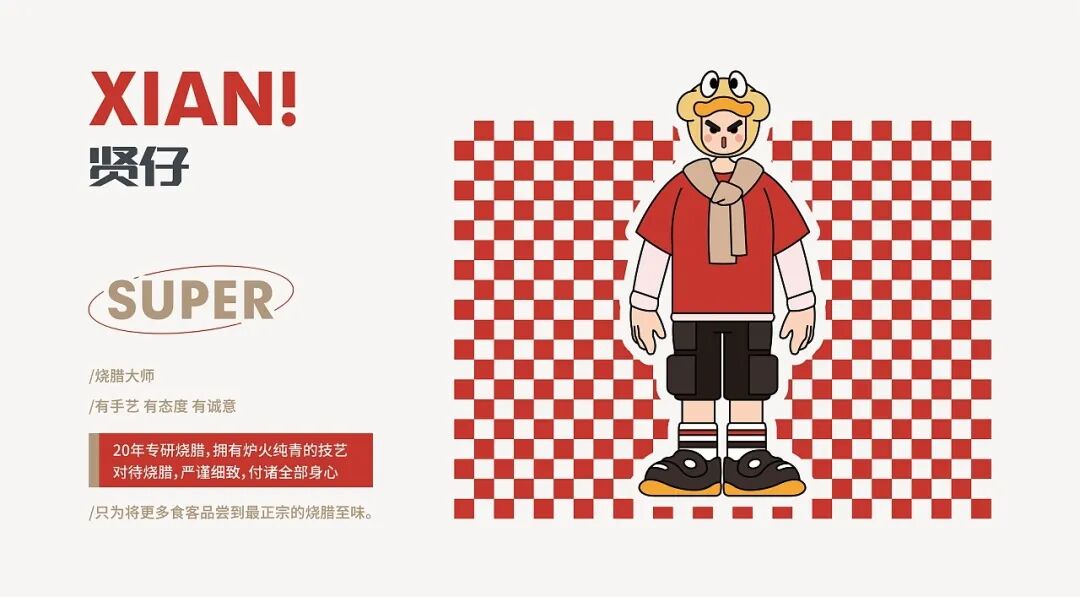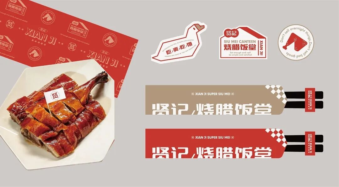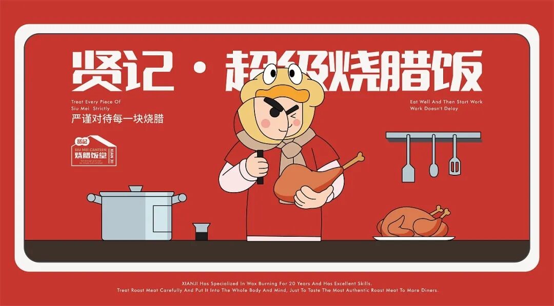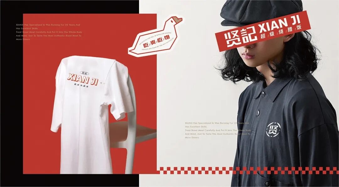 视觉呈现上,打造有手艺、有态度、有诚意的烧腊师IP,深化品牌形象,让品牌拥有视觉记忆点;并以新潮时尚、年轻个性的风格提升贤记品牌的视觉表现力。