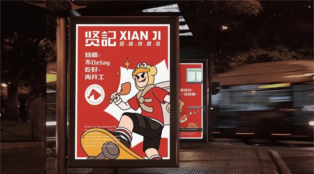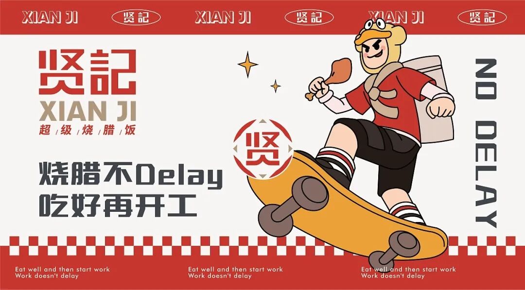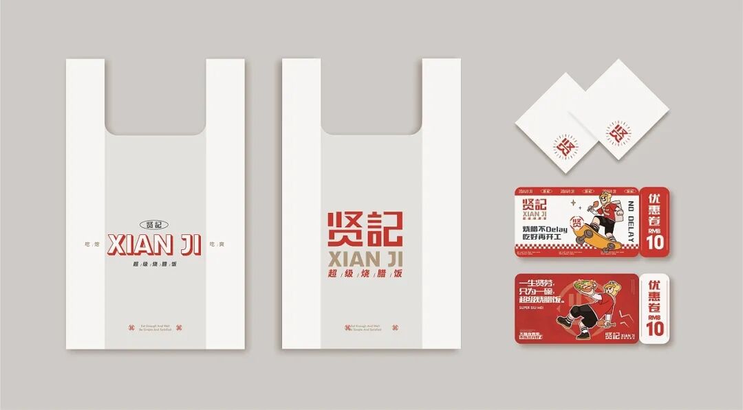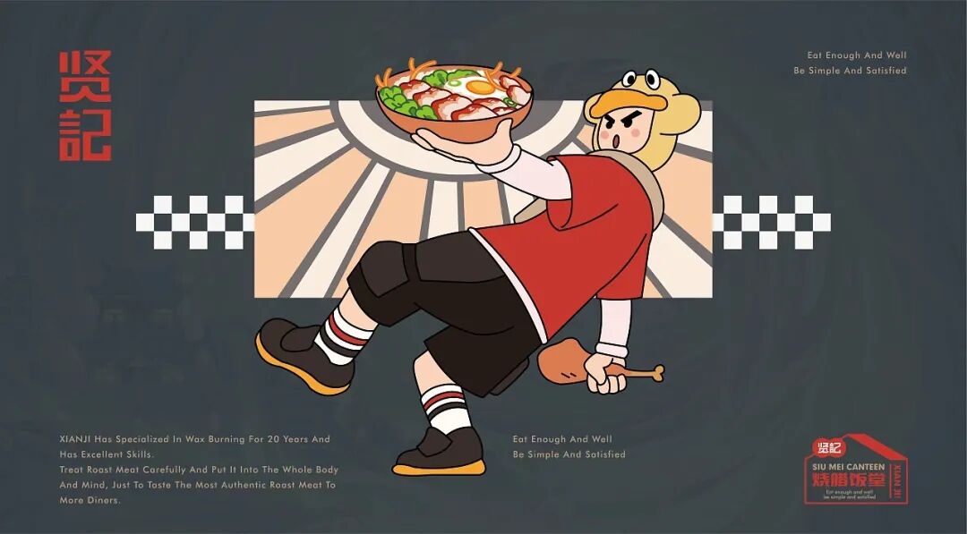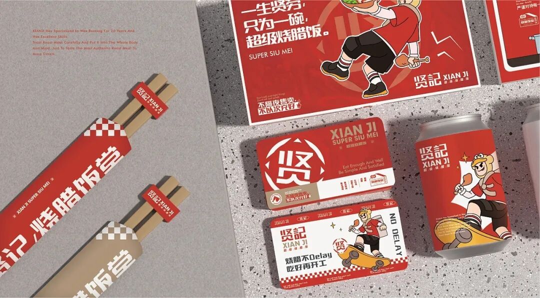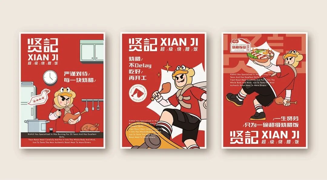 视觉呈现上,打造有手艺、有态度、有诚意的烧腊师IP,深化品牌形象,让品牌拥有视觉记忆点;并以新潮时尚、年轻个性的风格提升贤记品牌的视觉表现力。