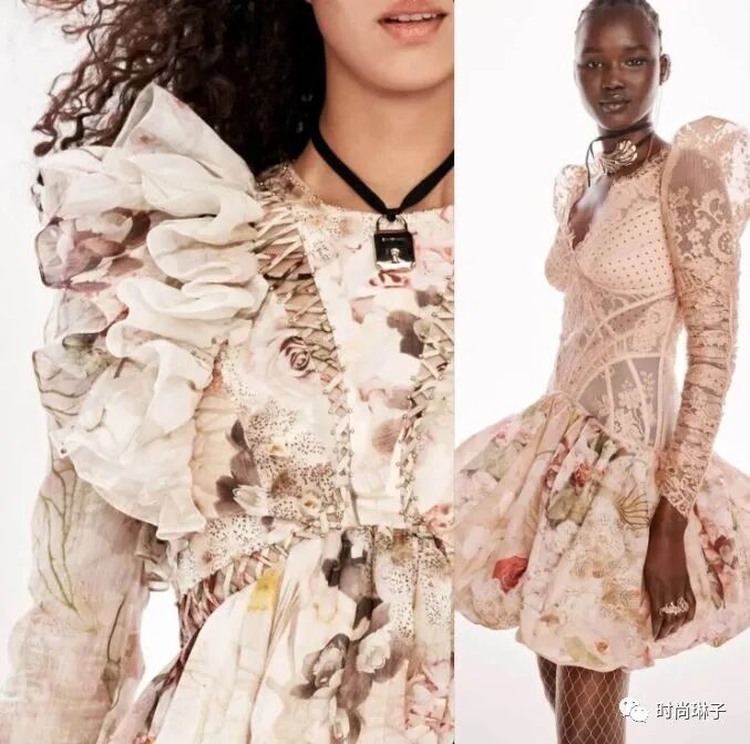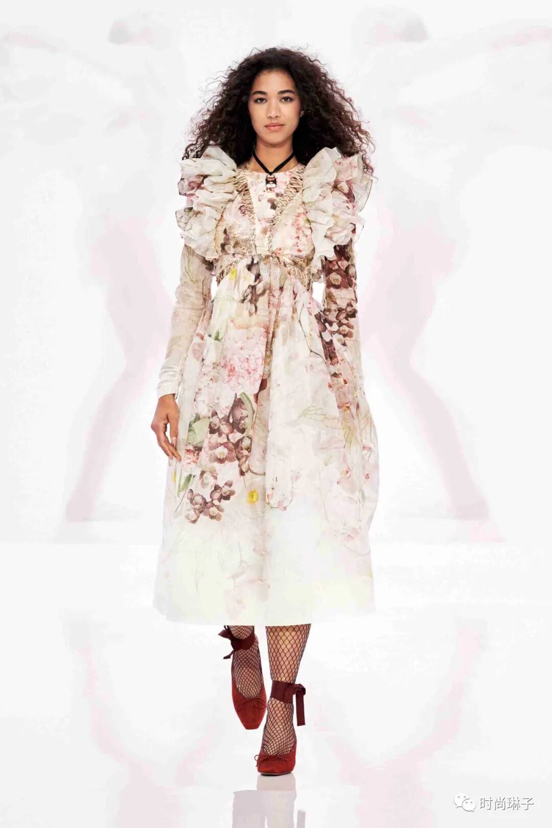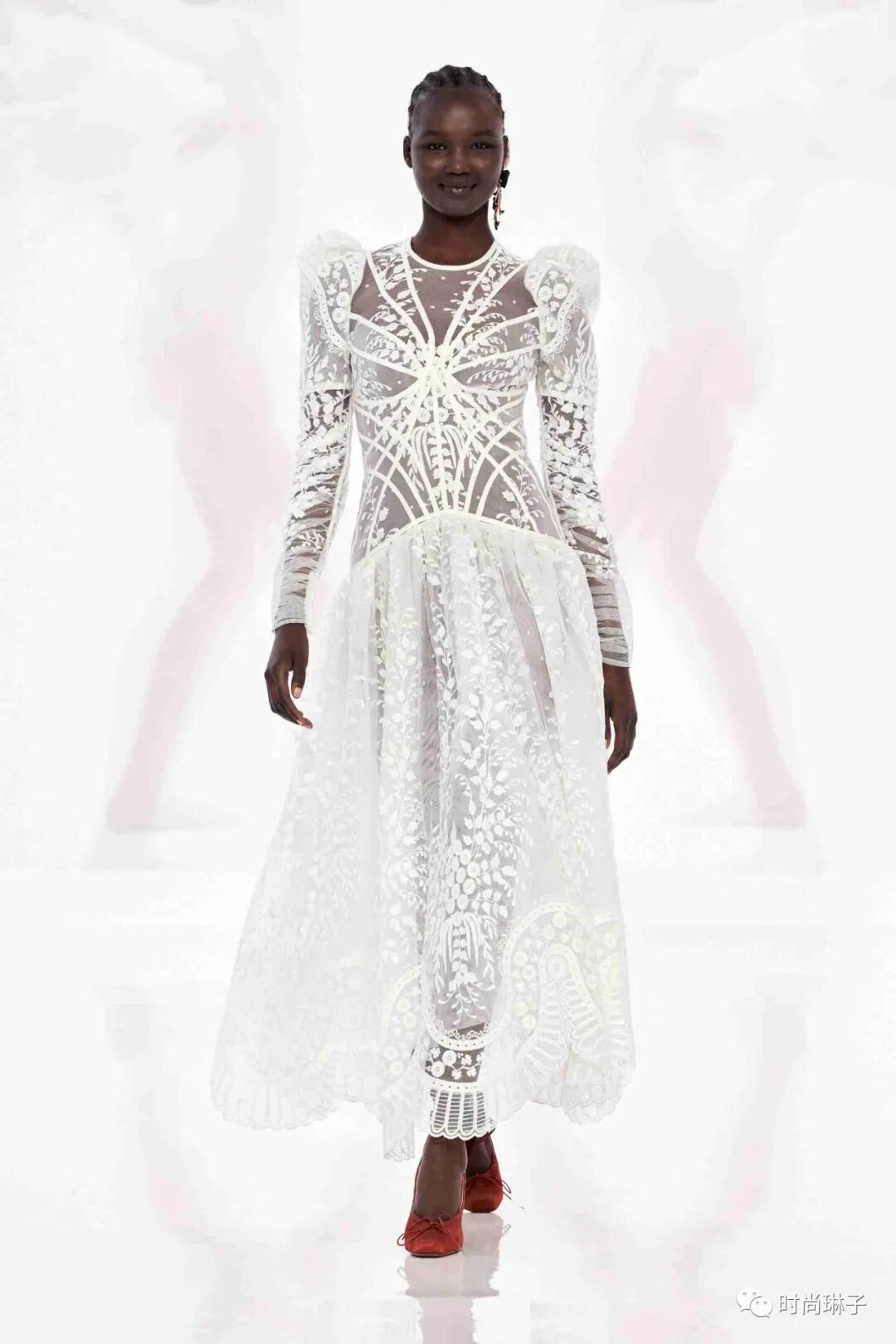 该季依然采用了蕾丝,雪纺和薄纱等轻盈材质,打造了品牌标志性的仙女风连衣裙。