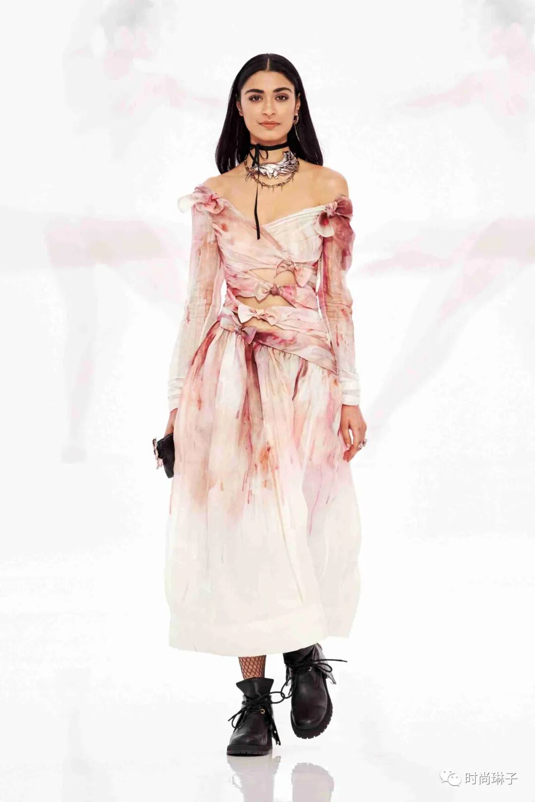 除了舞者印花图案,该季还与摄影师 Pierre Toussaint 和花艺师 Saskia Havekes 合作,将体现了女性柔美的鲜进行拍摄并数字化处理,编辑成更大胆、更清晰、更抽象的印花图案,为仙气的连衣裙带来一丝朋克风格,以满足Z时代年轻消费者的需求。