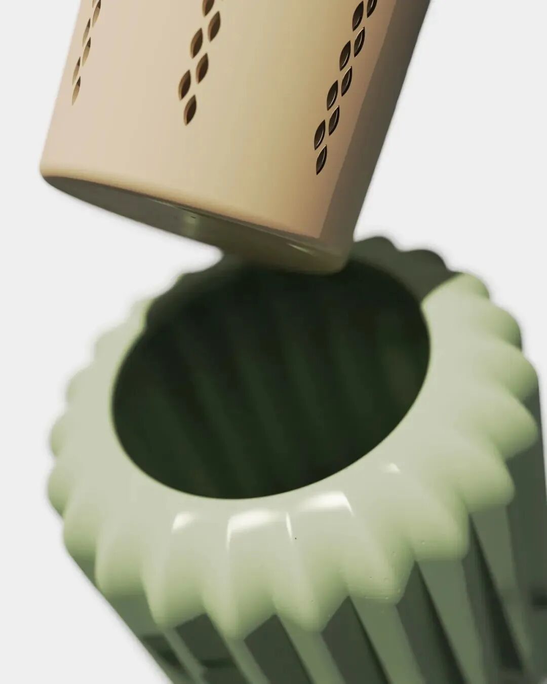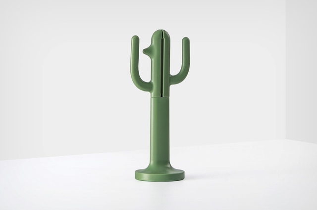 这款形似仙人掌的花盆,设计灵感来自于阿根廷仙人掌的形态及其内部蓄水的能力。 剪刀插在仙人掌茎的根部,仙人掌的手臂形成剪刀的手指环。此外,支架也作为一个很好的剪纸工具,使它成为儿童观也可以使用的完美的一对安全剪刀。 绿莹莹的颜色让眼睛很舒服,可爱的杯子把手也很圆润,高高的咖啡壶和几个杯子堆叠在一起,很像仙人掌,让咖啡桌活泼了起来。 大家都喜欢在办公室桌上放一小盆仙人球,因为这些小植物生长缓慢,需要水份极少,适合办公桌这样的环境。但Cork Cactus不仅不需要水和保养,你还可以把你的小东西放进去,让你的桌面保持整洁,也可以把你的备忘记事插在仙人掌上,成为办公桌上一个体贴的小工具。 一个仙人掌形状的衣帽架,让你的生活空间充满趣味。 由仙人掌的造型汲取灵感的榨汁机,可以从柑橘类水果中提取汁液,并将汁液收集在其花盆式容器中,然后将其倒入玻璃杯或水壶中。陶瓷材质不会污染也不会对柠檬酸起反应,同时适用于洗碗机。 备受设计师青睐的仙人掌元素,用在叉勺上,也十分可爱,手柄的纹理增加握感体验 Popup Lighting 是一个由以色列设计师 Chen Bikovski 以立体书为灵感创立的灯具品牌。借助内部的构造,投射在墙壁上的光就像是为灯罩填上了笔画,营造出真实物件的效果。这套仙人掌灯是她的最新作品,连底座也特意设计成了花盆。