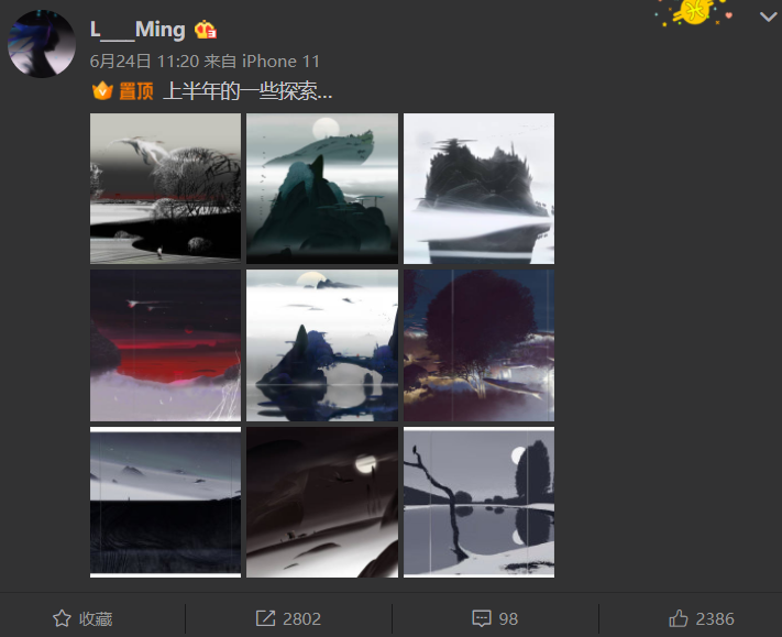L____Ming:至今也入行近十年,先后就职于完美世界,网易,目前在叠纸就职场景美术总监。入行这些年也做了挺多项目,有早期的《诛仙世界》,《perfect new world》UE4,《诛仙青云志》,《天谕》,《天谕手游》,《忘川风华录》,《荒野行动plus》等。