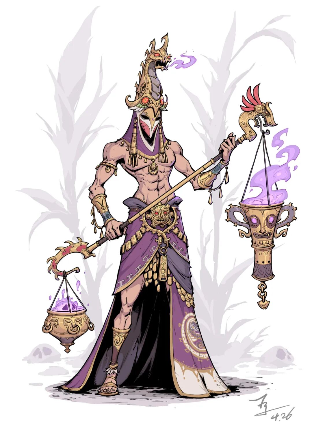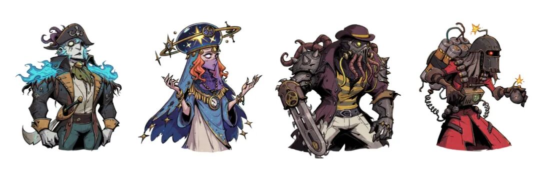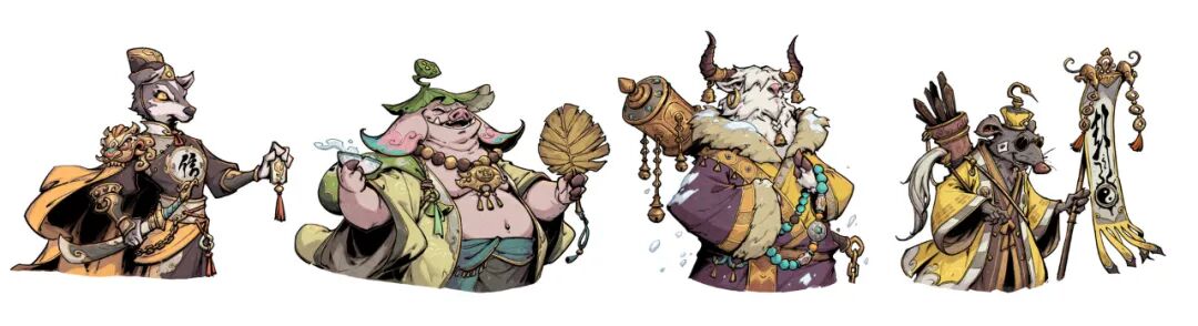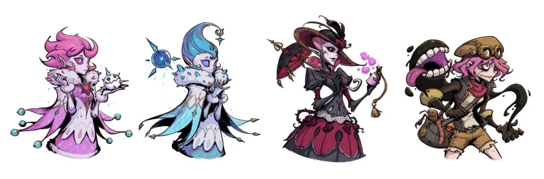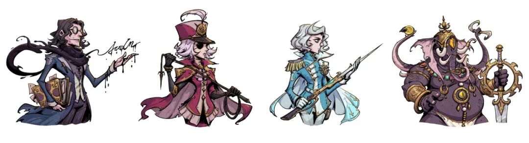 F艾服我想应该是趣味、共鸣和突破这三个词吧。趣味指的就是我希望大家看到这套作品能觉得设计地有趣有意思。共鸣指的是我这套设计的来源都是以生活中找的原型,角色的穿搭武器和性格也都有去贴近他的职业,希望大家能在看的时候能产生更丰富的联想。至于突破我想指的是我在这次的作品设计中也收获了很多,也有信心上的成长,在之后的绘画生涯中我还会不断地突破之前的自己的。