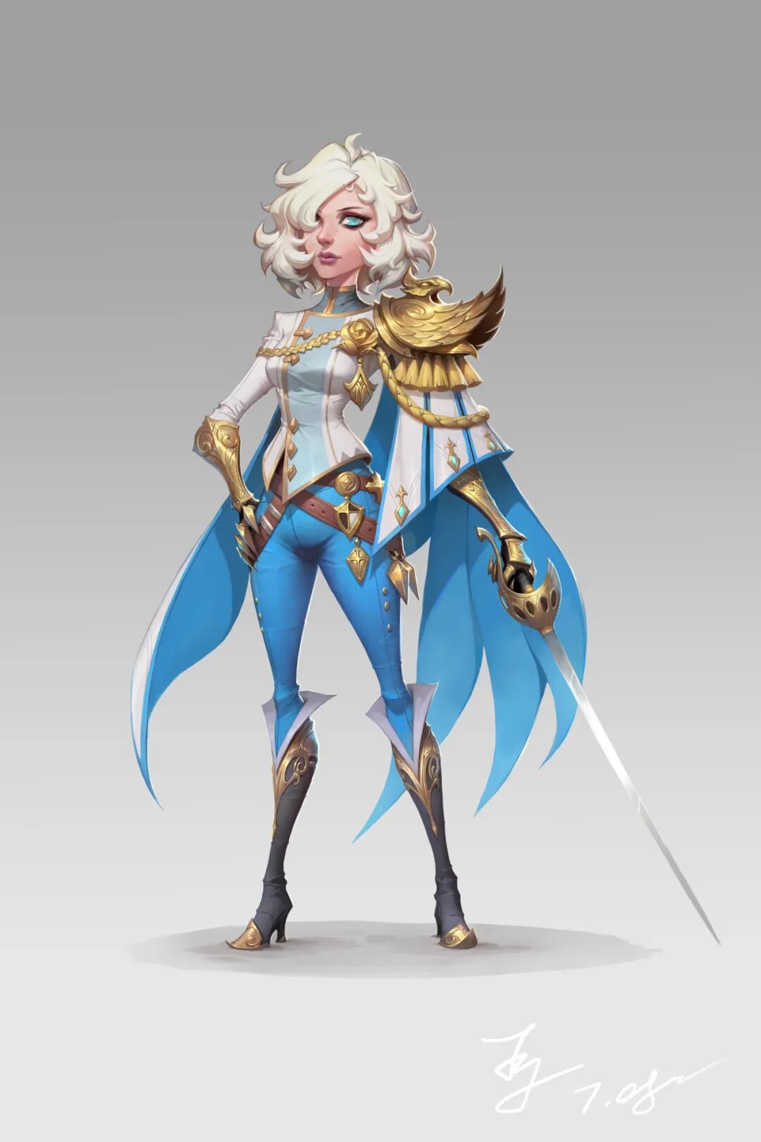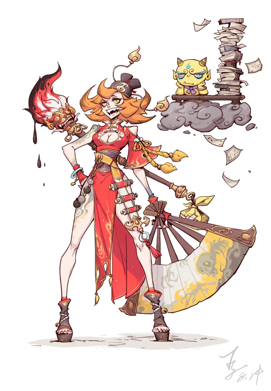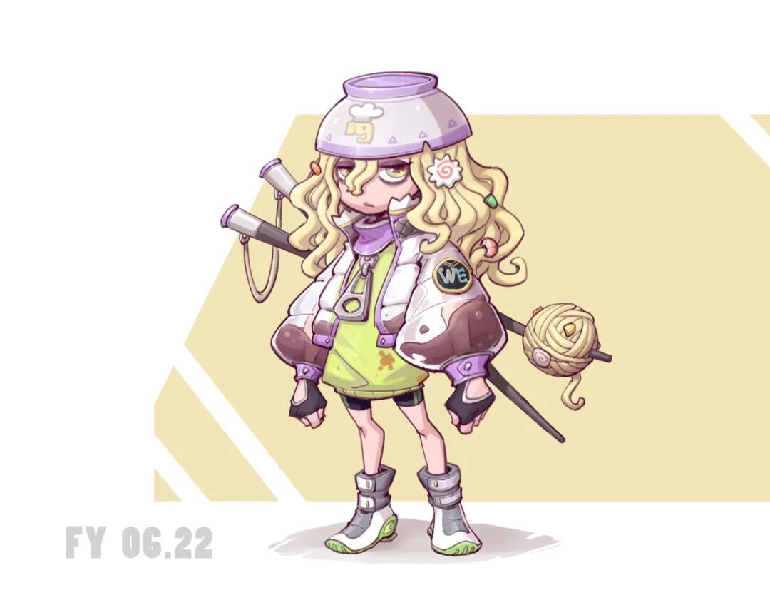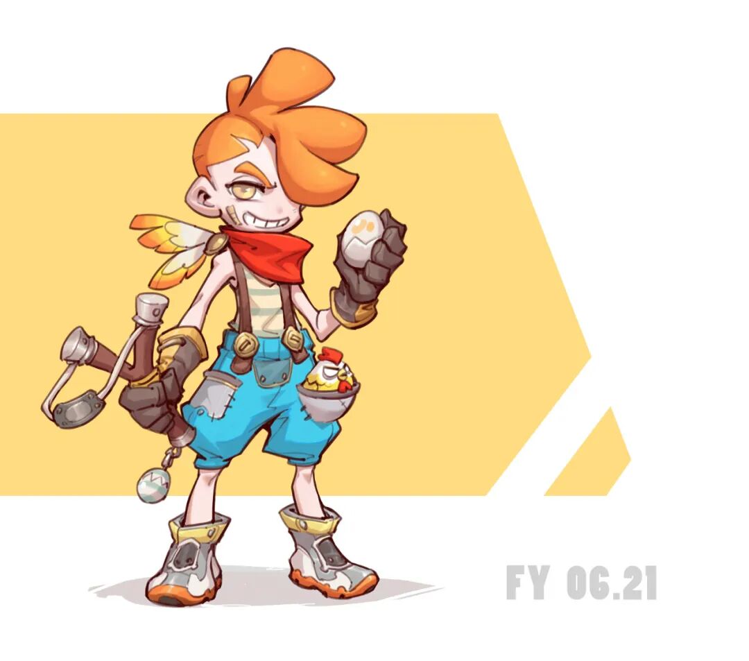 F艾服我设计角色注重的还是在整体创意和造型美感上面,去琢磨怎么把这两点结合好。创意是做角色原画最重要的,要让设计有趣有新意需要不断尝试和打破惯性思维,有了好的点子就需要你有好的造型能力去驾驭你的创意,表现出他的美感来。挖掘设计点我喜欢先去尽量地发散思维,然后在脑子里整理筛选,多出几版草图,每个草图以一种创意点为主来设计,然后看看这几版里有没有好的点子可以融合到一起的,当然也会在创作的时候进行改动调整,尽量做到让自己满意。
