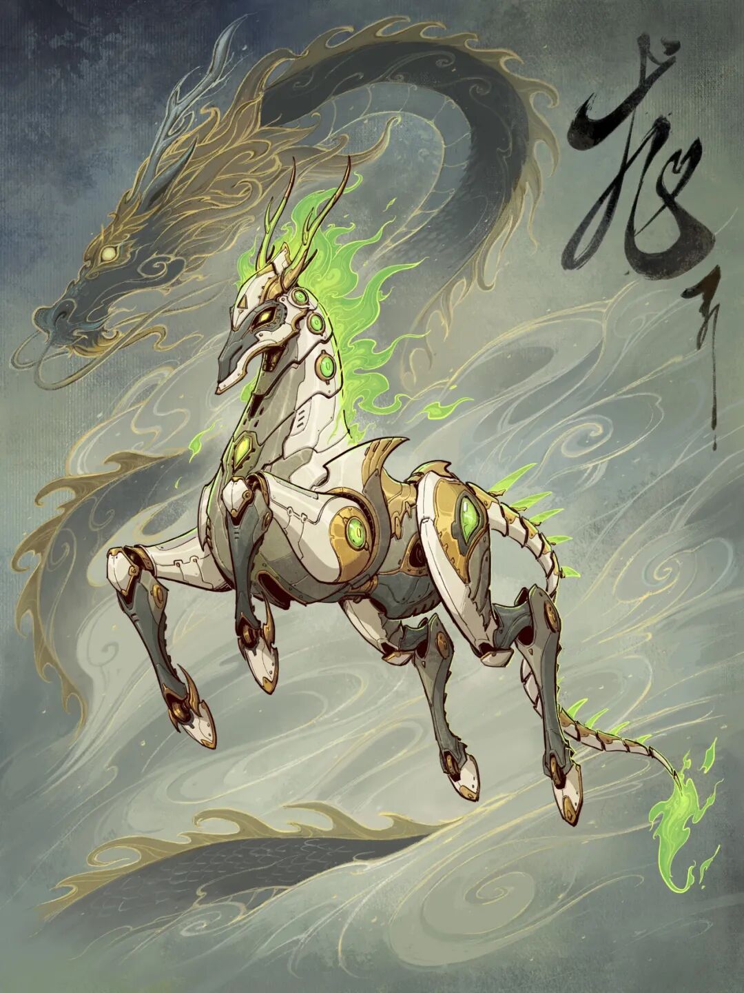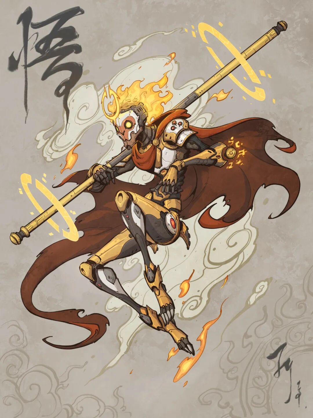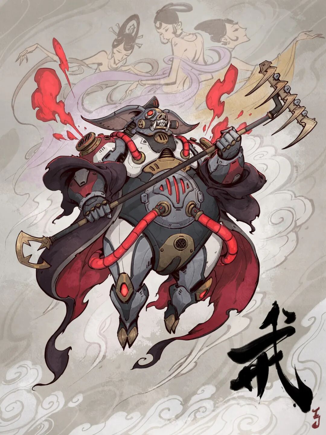 F艾服:这套东方题材的作品还没有画完,当时创作这套作品也是公司里的一个绘画比赛,我就想到以东方五行元素为每个职业创作一套未来科幻的设定,因为我平时不怎么画科幻的题材,也不太用勾线的画法去创作,然后最近国潮的概念也很火,就想用这个机会结合这几个点来练习尝试,让自己的能力得到一些补足,我是有很认真的在画的但最后成品出来还是看到很多能力不足的地方,我之后会把这套作品画完然后在自己不擅长的领域去多多学习尝试。