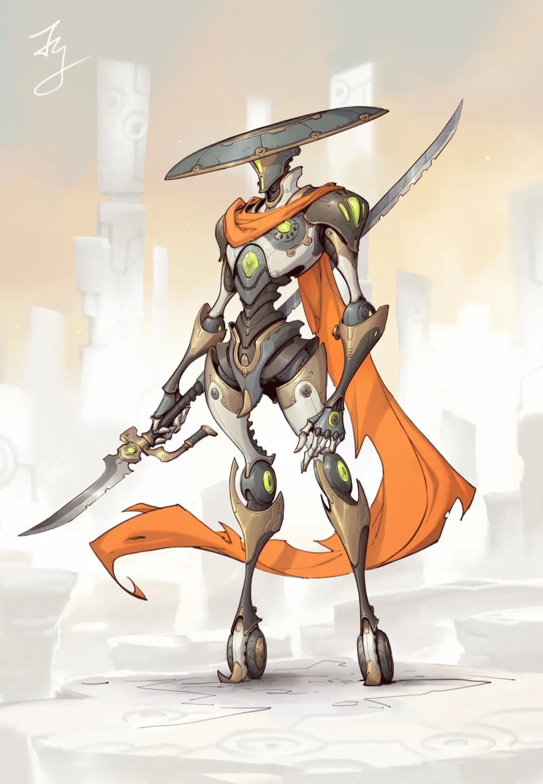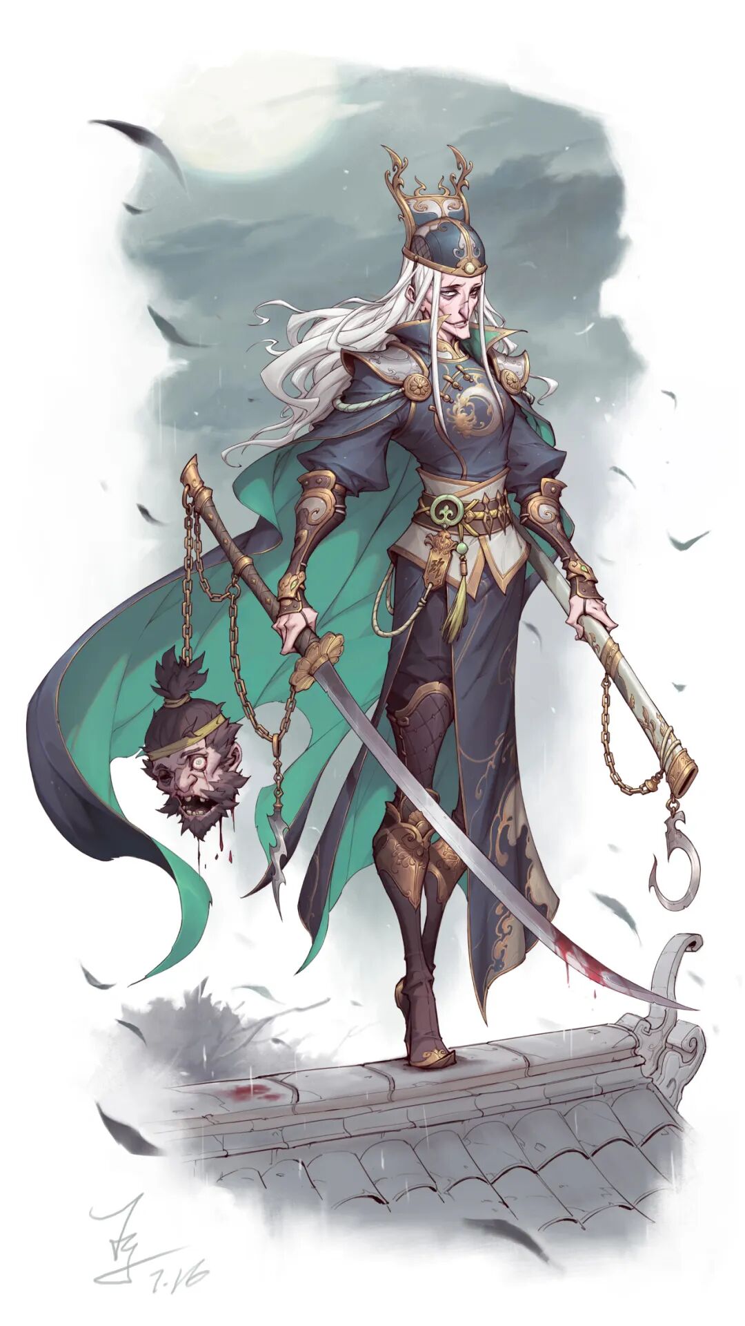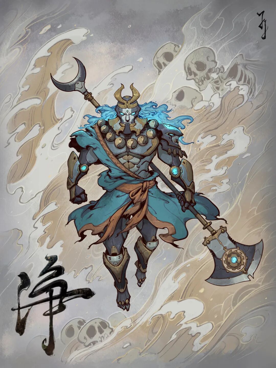 F艾服:这套东方题材的作品还没有画完,当时创作这套作品也是公司里的一个绘画比赛,我就想到以东方五行元素为每个职业创作一套未来科幻的设定,因为我平时不怎么画科幻的题材,也不太用勾线的画法去创作,然后最近国潮的概念也很火,就想用这个机会结合这几个点来练习尝试,让自己的能力得到一些补足,我是有很认真的在画的但最后成品出来还是看到很多能力不足的地方,我之后会把这套作品画完然后在自己不擅长的领域去多多学习尝试。