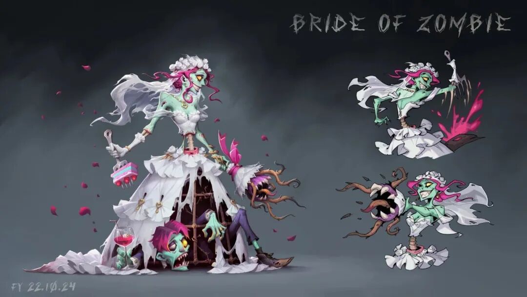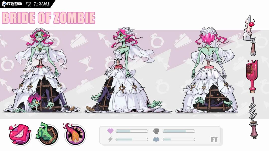 那个女性丧尸角色的灵感来源是婚礼,也参考了僵尸新娘的一些设计,设定上就是她死前最深的执念对爱情婚姻的憧憬,从而联想到她的装束和攻击行为模式什么的,最后创作出这个角色。