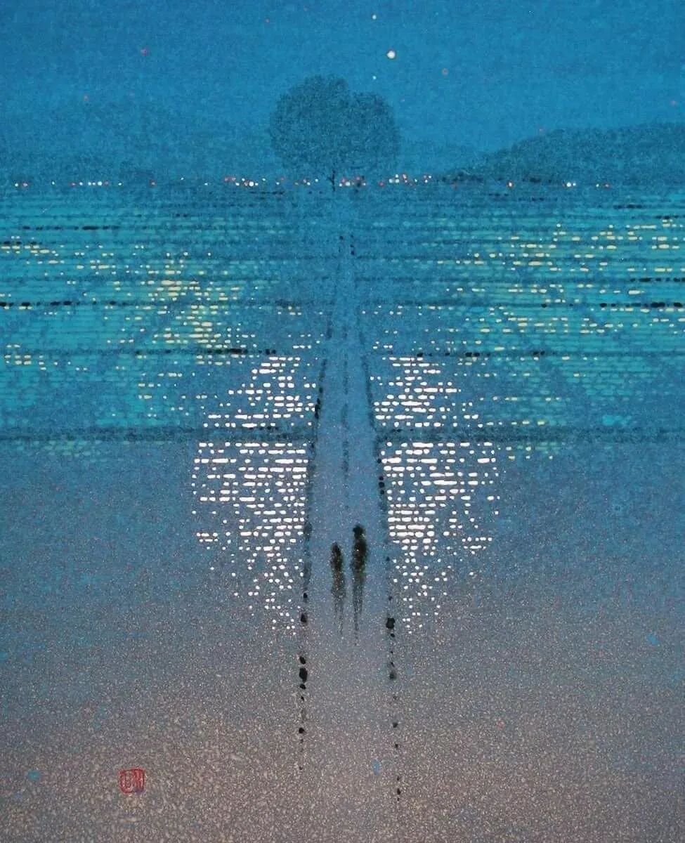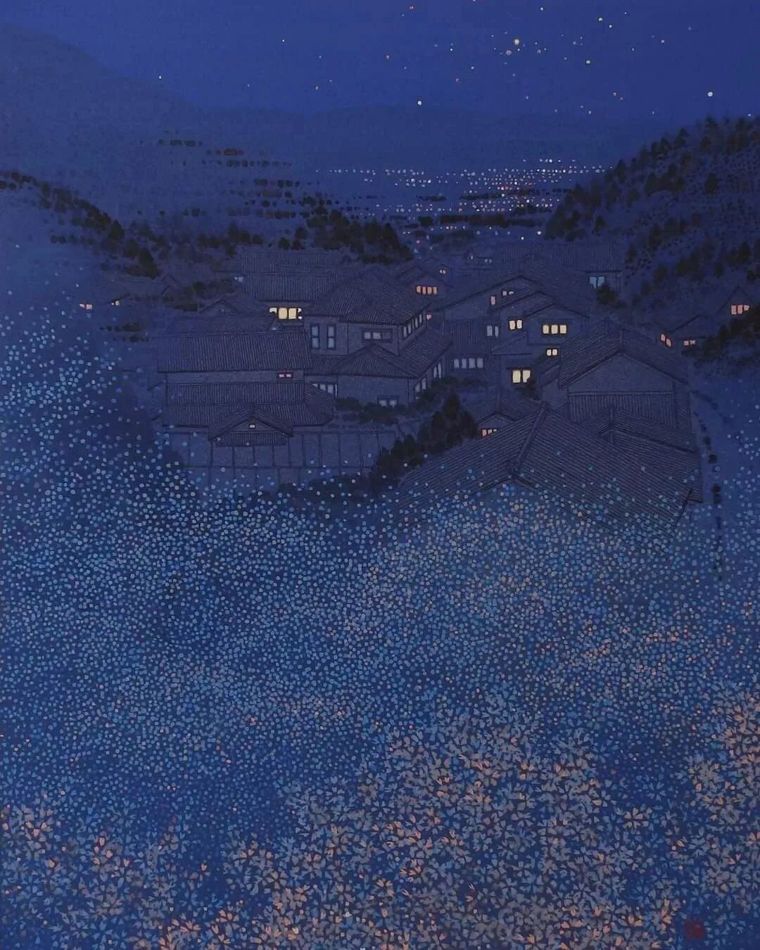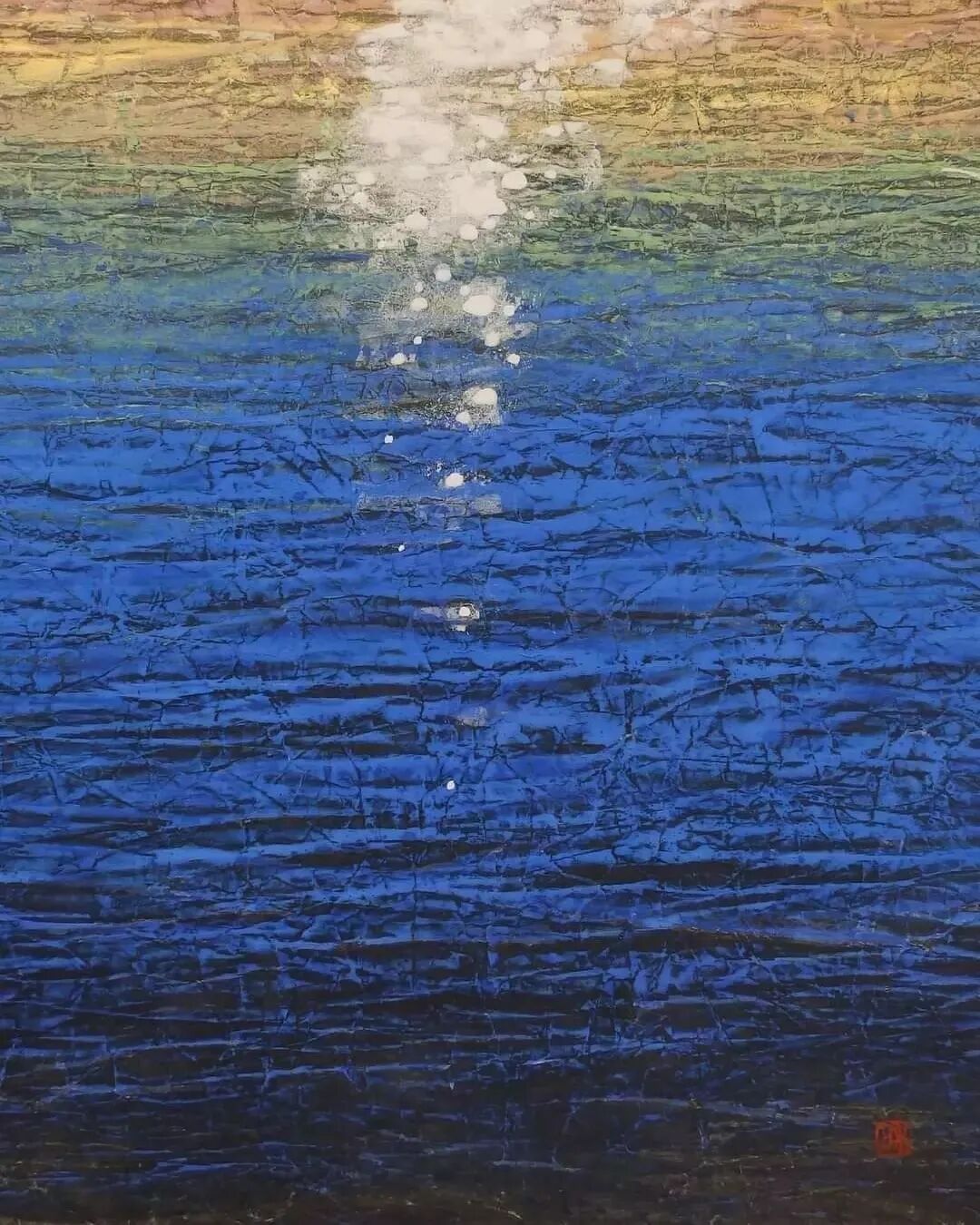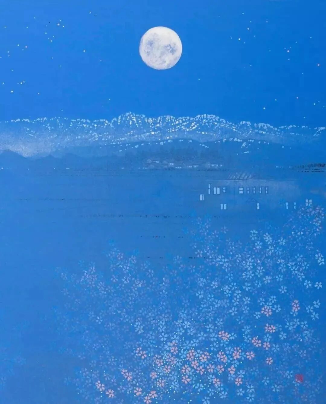 日本画家斉藤和(Kazu Saito,于1960年生于京都,1987年从京都市立艺术大学日本画专业毕业后,获得各种奖项。他对蓝绿色的表现力和描绘力非常出色,作品给观众带来平和和治愈之感。