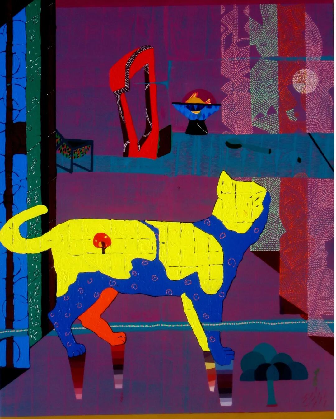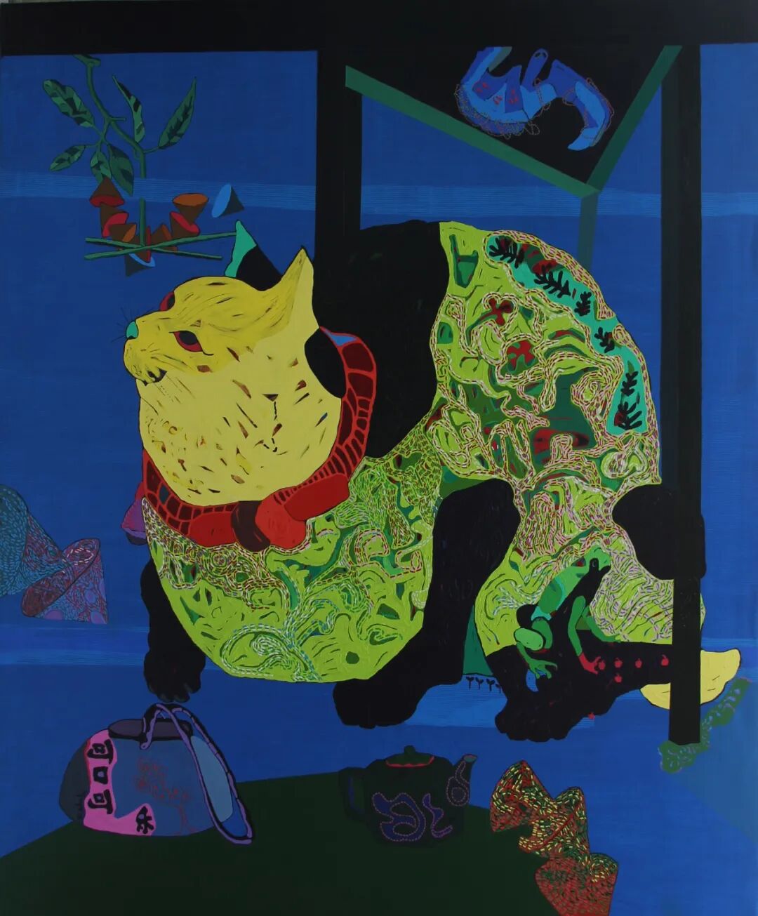 Cat with Yellow Acrylic on Canvas 121 x 153cm