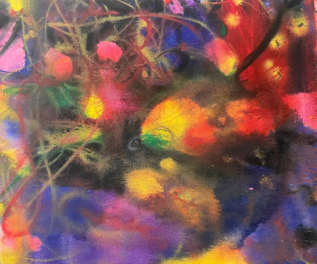 "Face - Waking Insects" acrylic painting 54x70cm 2022