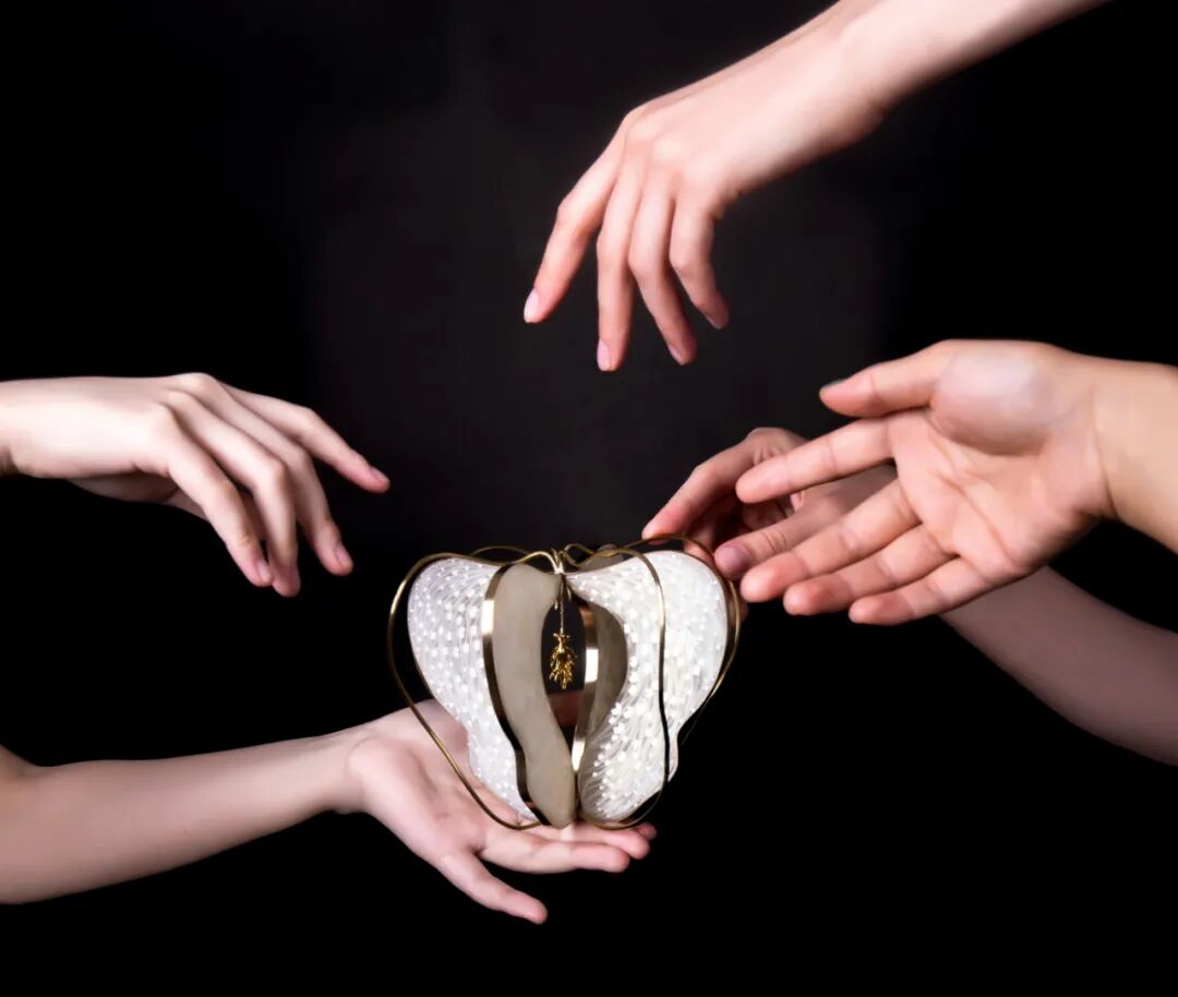 I always sit on a park bench, watching birds eating breadcrumb, or looking up to watch them flying in the sky. Their wings look gorgeous in the sunshine. It is feathers that give them the ability to fly freely. And I sometimes meet another scene, mud and blood covered wings, leaving broken and crushed feathers. It's a sign of death, the other extreme of freedom. What will happen to democracy out of control? The white feather texture looks beautiful and holy, but it is also easily broken and polluted. I cut the white feathers and seal them into the resin. Translucent resin is hazy, creating a peaceful world in which feathers representing freedom are imprisoned, and any anxiety, anger, corruption are forbidden. The metal variant seeds hidden in jewellery objects contain both the richness and darkness of life. All the seeds look quiet, waiting for a moment or someone to come and arouse them from deep sleep.