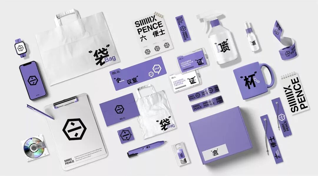六便士的品牌视觉核心是六便士的首字“六”。将字“六”去除部分笔画,但这并不影响识别,通过这样的视觉传达二手商品并不影响使用的价值观点。上下保留前后引号的图形,并将主要设计元素围合在六边形内部,通过引号和去除笔画这样的设定,最终形成了现在的视觉系统。