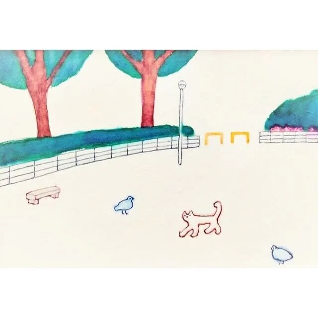 日本插画师 nao kamimura  ,作品使用水彩大面积铺色,局部用细线勾勒,水彩柔和的晕染效果与清晰锐利边缘结合,呈现出一种朦胧又清晰的的视觉感受。作品中的元素都很迷你,错落有致的布置在插画中,给人一种精巧又有趣的感觉。