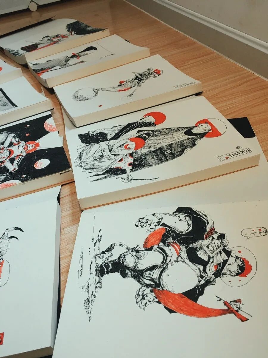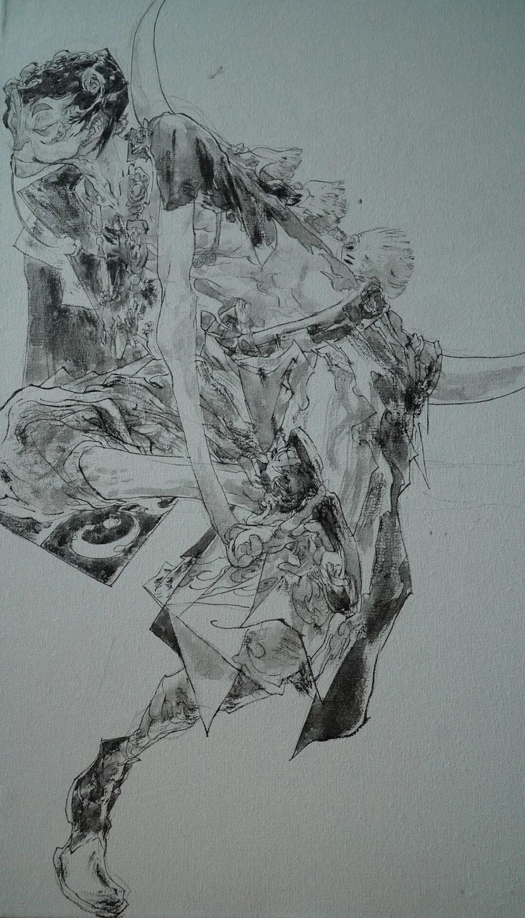 工作之余,学习较多的则是国画类的大师们,比如戴敦邦、程十发等,对线条的松动和写意留白,以及用线上的取舍,然后最近开始学习席勒、巴斯奎特,希望能够有新的收获。