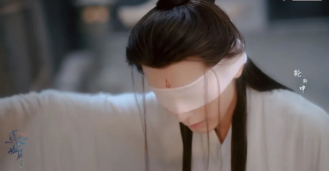 白纱蒙眼的造型与剧中人物巧妙呼应