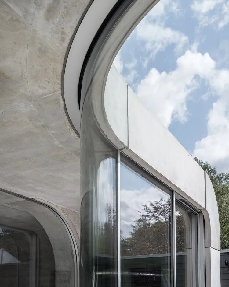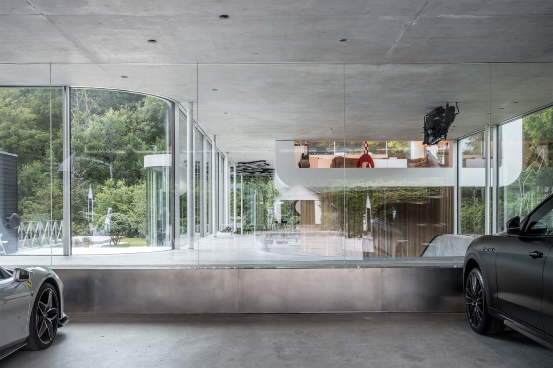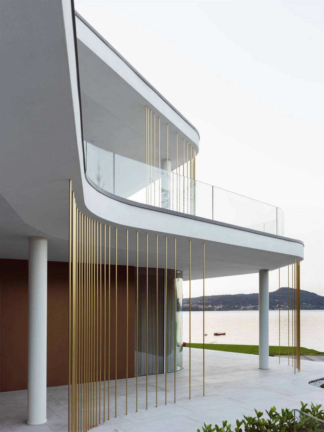 于是设计师利用混凝土与玻璃为主材料进行设计,别墅主立面非常开敞,巨大的玻璃幕墙能引入足够多的光线,还可以欣赏室外美景。