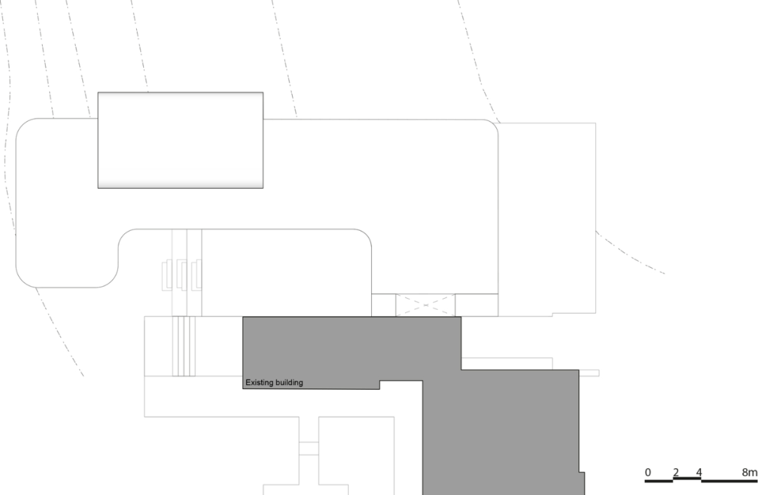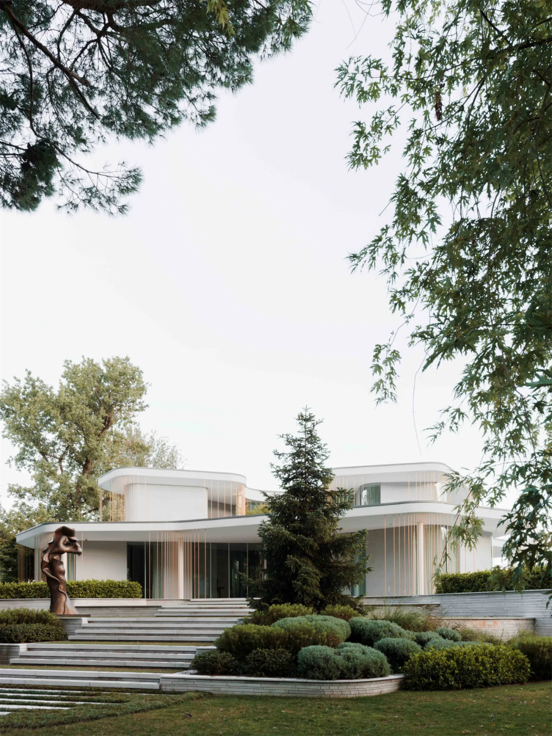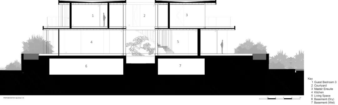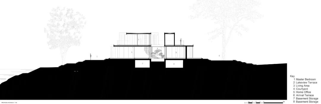 由于建筑位于湖畔,为了有更好的视线与安全居住的环境,设计师将住宅本身抬高了 3 米,采用了退台的形式让建筑和景观更好地融为一体。